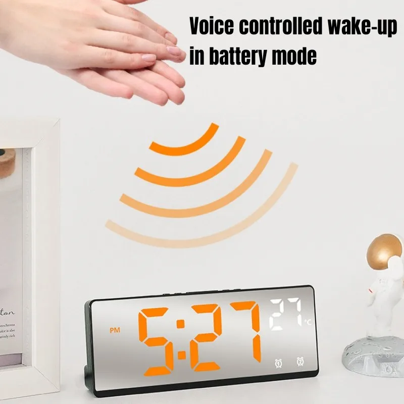 • Commande vocale: Frappez vos mains ou frappez sur la table pour réveiller le réveil