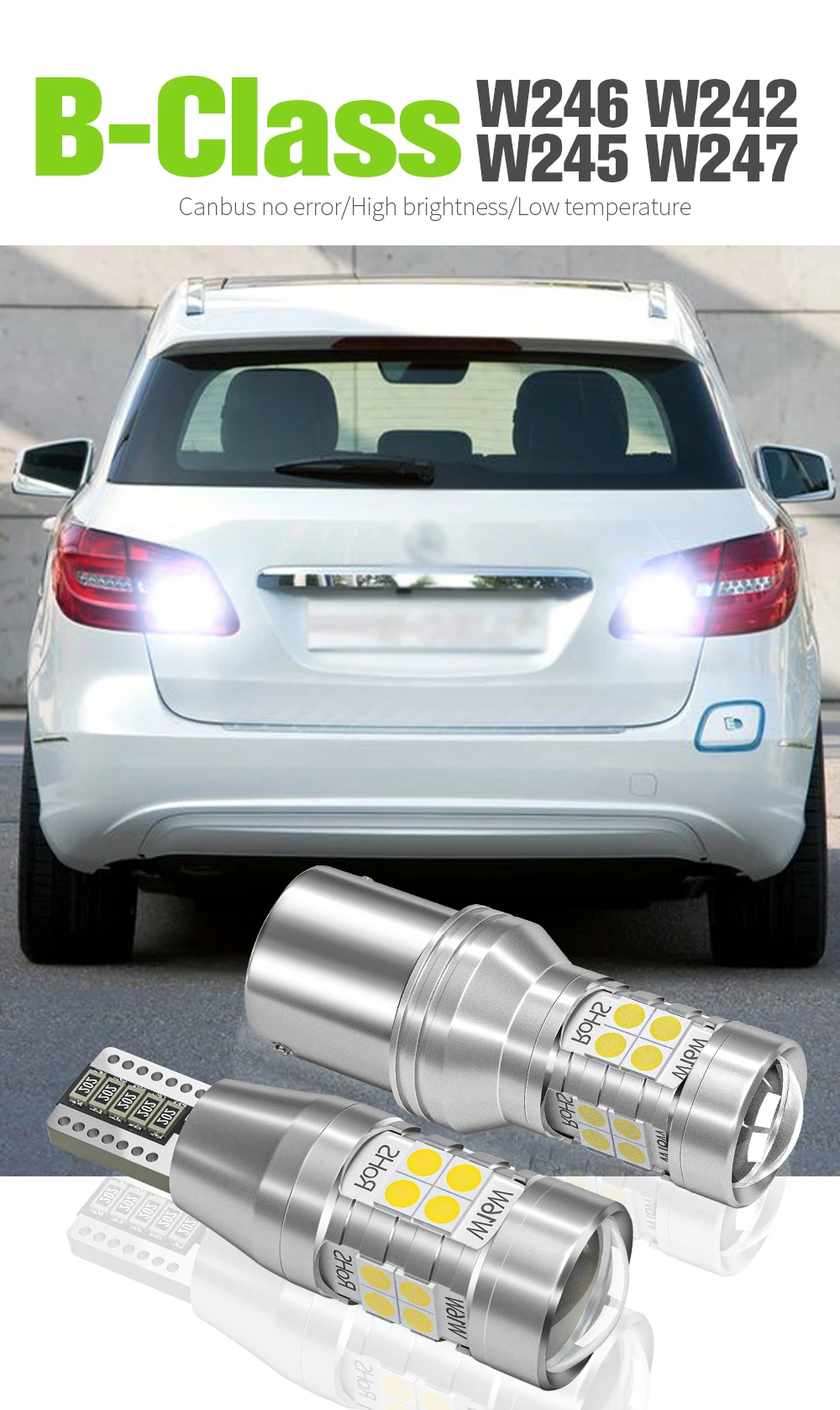 Les lampes de recul LED pour Mercedes Benz Classe B sont un excellent choix pour améliorer la visibilité arrière de votre véhicule. Elles sont spécialement conçues pour s’adapter aux modèles Mercedes-Benz B-Class (W246) (2011-2018), Mercedes-Benz B-Class (W242) (2011-2018), Mercedes-Benz B-Class (W245) (2005-2011) et Mercedes-Benz B-Class (W247) (2018-).