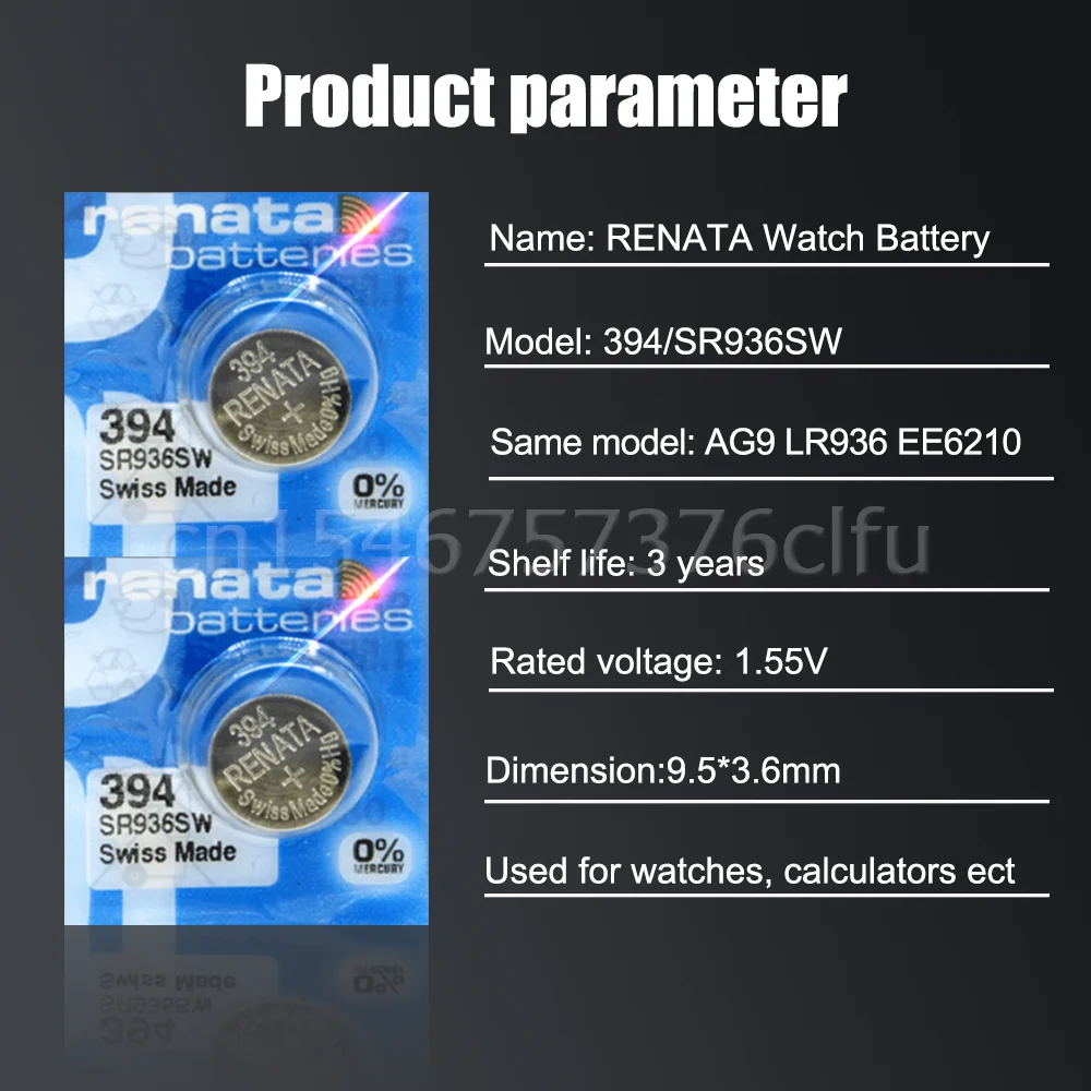 - Pile de montre à bouton Renata 394 SR936SW AG9 LR936 1.55V en oxyde d’argent