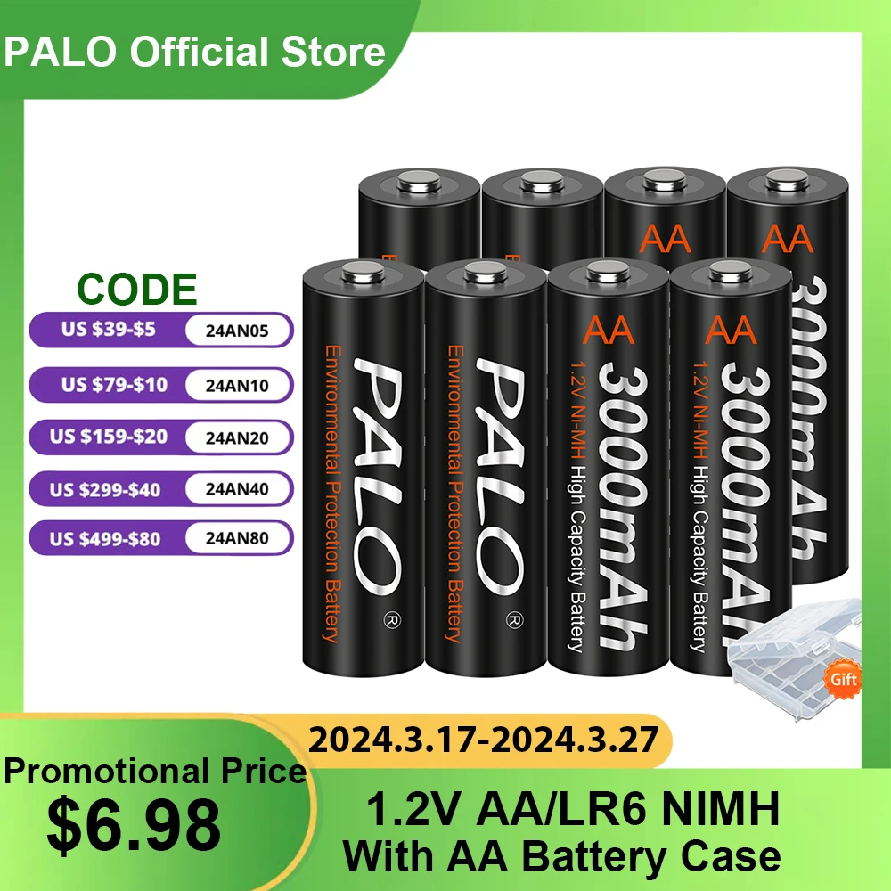 Le PALO-Lot de piles rechargeables AA est conçu pour répondre à vos besoins en énergie pour divers appareils. Il possède une tension nominale de 1.2V et une capacité de 3000mAh, ce qui en fait un choix idéal pour les appareils photo, les jouets et les voitures. Ces piles ont également une faible décharge automatique, ce qui signifie qu’elles conservent leur charge pendant une longue période d’inutilisation.