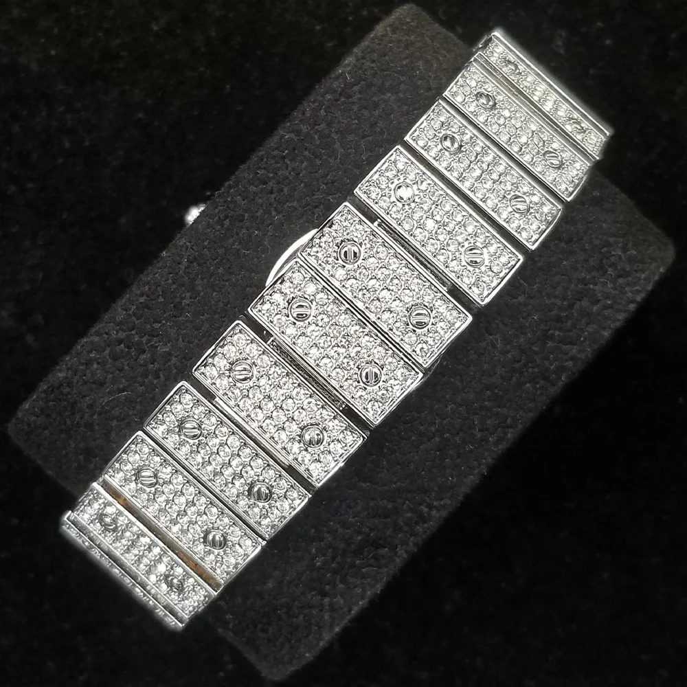 La montre carrée Ice Out pour homme de la marque MISSFOX est un bijou de luxe. Avec son design entièrement en diamant, elle apporte une touche d’élégance à toutes les tenues. Son mouvement à quartz garantit un chronométrage précis. Elle est également étanche pour un usage quotidien (non adaptée à la douche et à la natation). Le plaquage en or 18 carats ne se décolore pas, assurant une durabilité exceptionnelle. Cette montre est un cadeau idéal pour Noël, un anniversaire, une fête ou une tenue de rencontre.