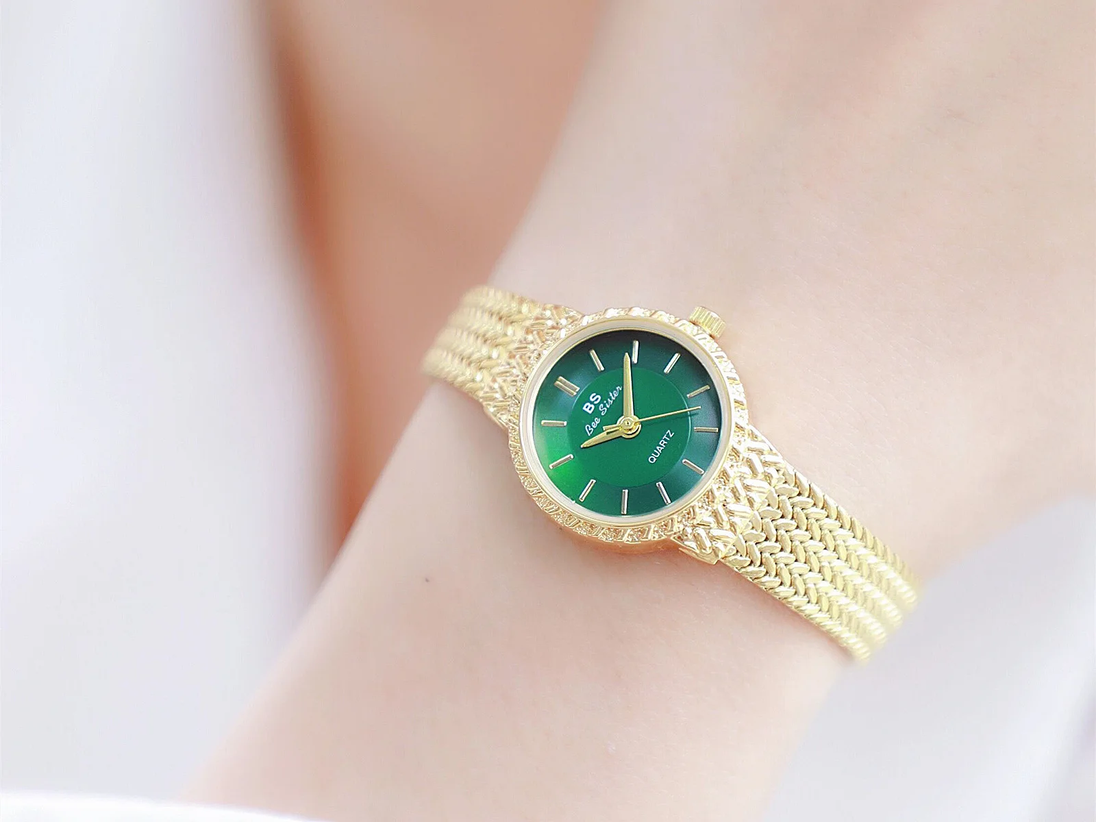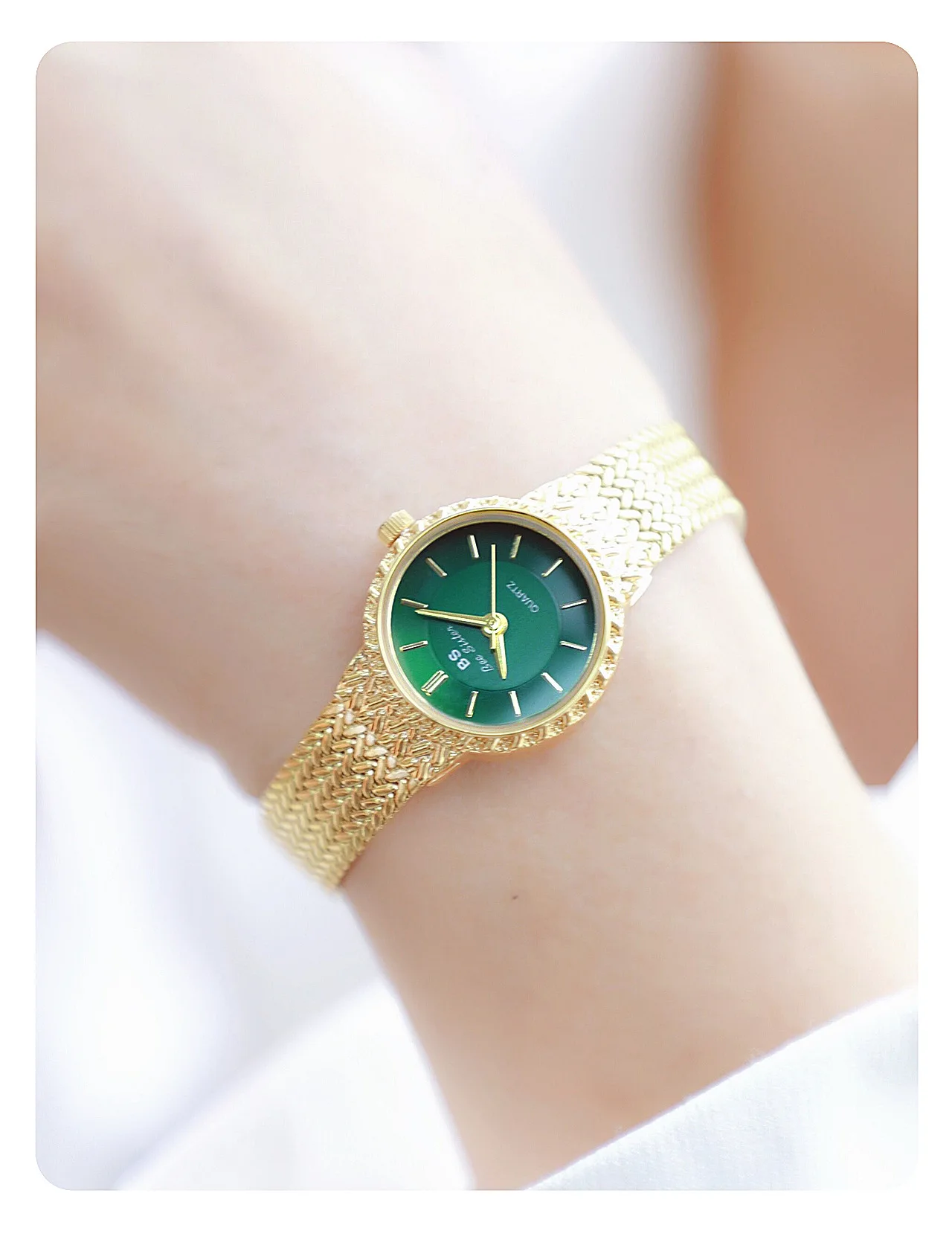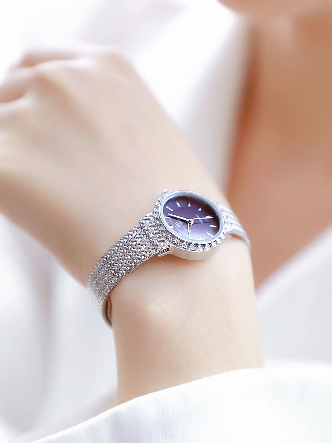 Avec un diamètre de boîtier de 22mm et une épaisseur de 9mm, cette montre a une taille discrète et convient parfaitement aux poignets des femmes. Le bracelet en acier inoxydable mesure 230mm, boîtier inclus, et a une largeur de bande de 10mm. La montre ne pèse que 35g, ce qui la rend légère et confortable à porter.