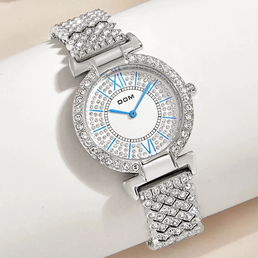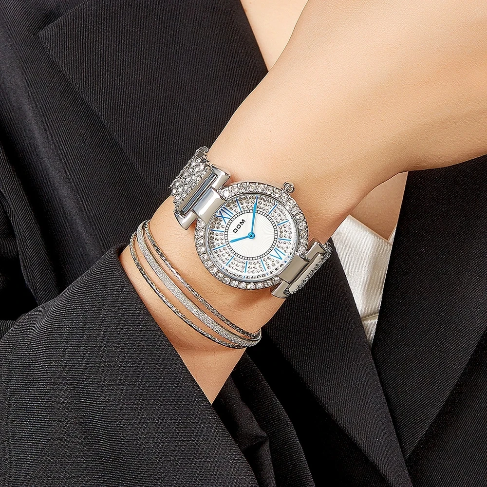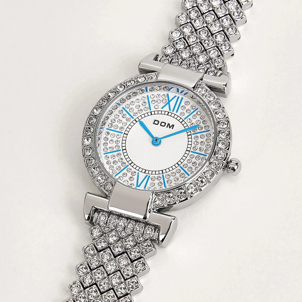 En conclusion, la montre DOM à quartz de luxe pour femme avec diamant argenté rond est une belle addition à toute collection de montres féminines. Son design élégant, sa qualité de fabrication et sa précision en font un excellent choix pour celles qui apprécient la mode et le style.