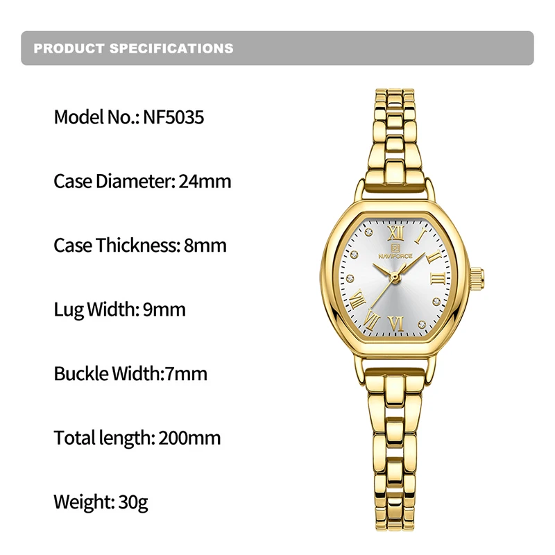 Après avoir examiné la description du produit et ses caractéristiques, il est clair que la montre NAVIFORCE pour femme est une option intéressante. Son mouvement à quartz standard garantit une précision dans la mesure du temps. En outre, son design créatif avec un cadran en forme de baril ajoute une touche d’originalité à la montre.