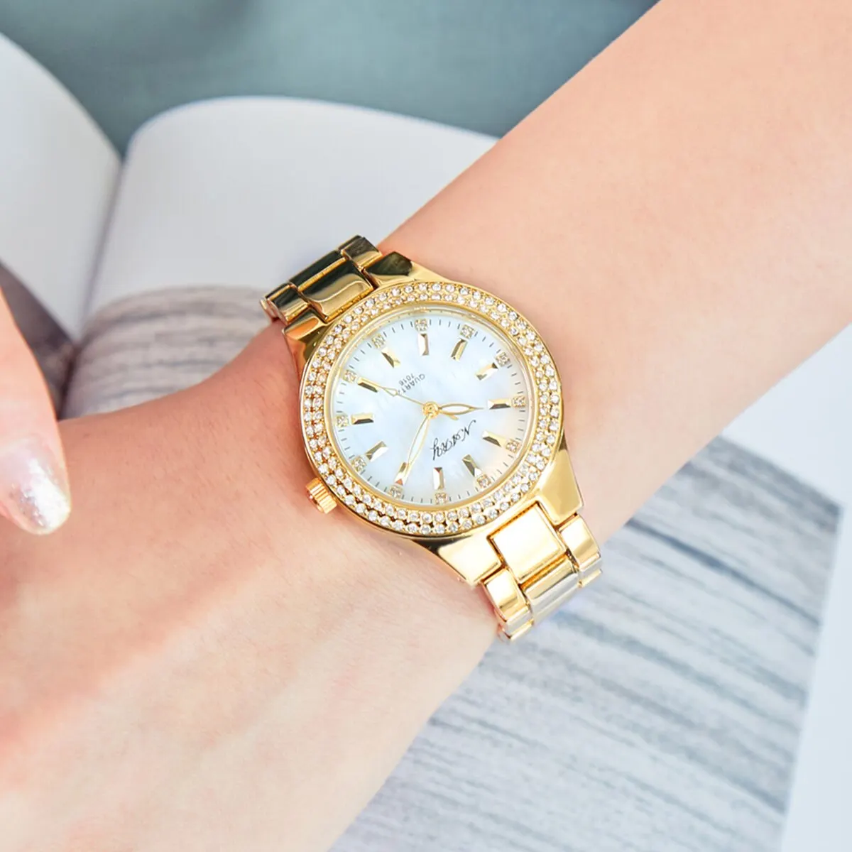 En conclusion, si vous recherchez une montre élégante et durable qui attirera les regards, la montre à quartz incrustée de diamants pour femme est un excellent choix.
