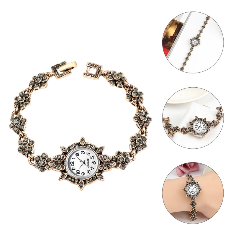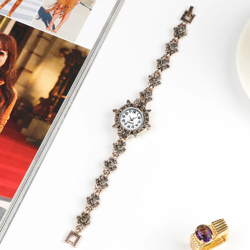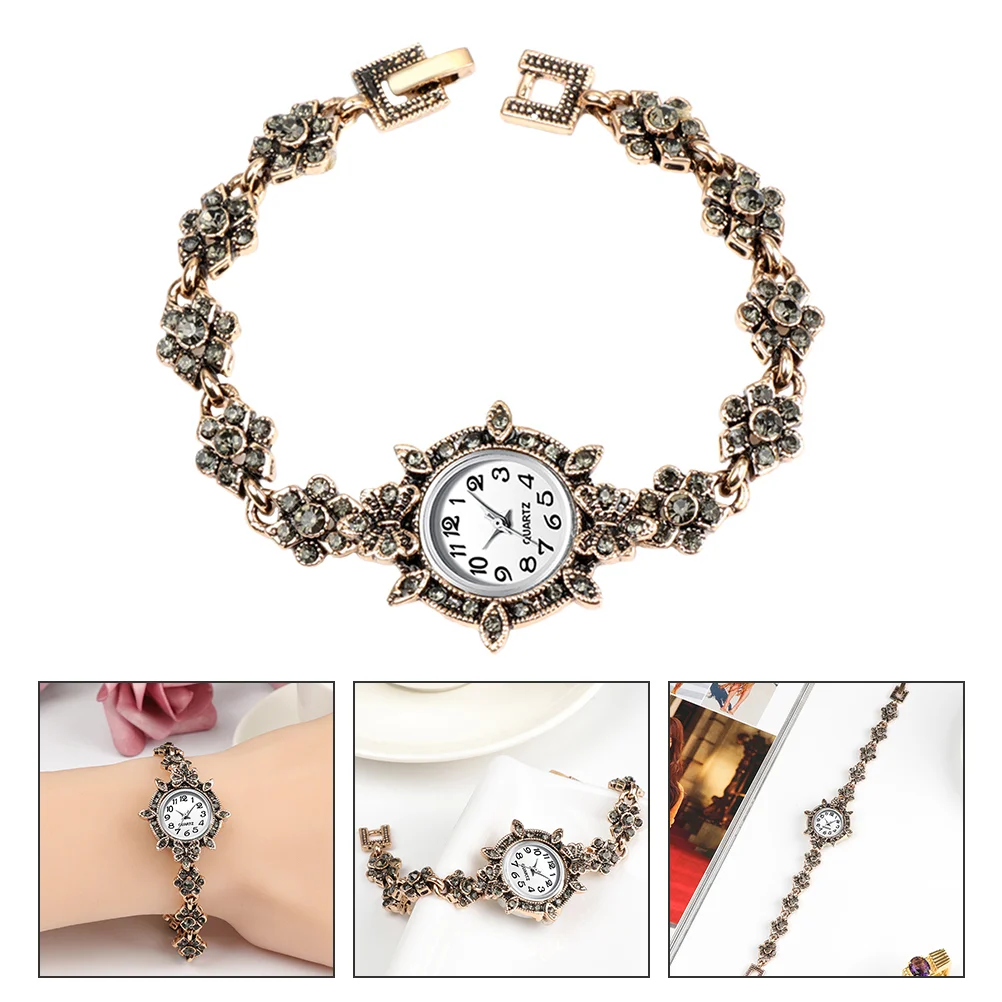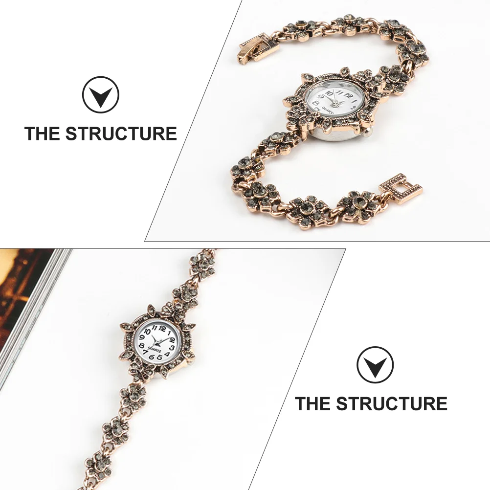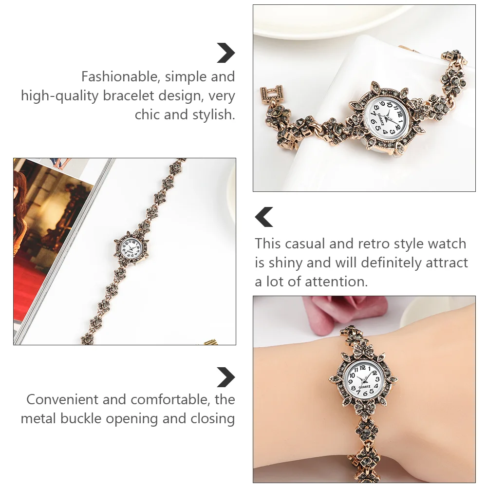 | Description | Montre à quartz avec garniture en strass pour femme, bracelet en diamant, décor de poignet vintage, style rétro d’affaires |