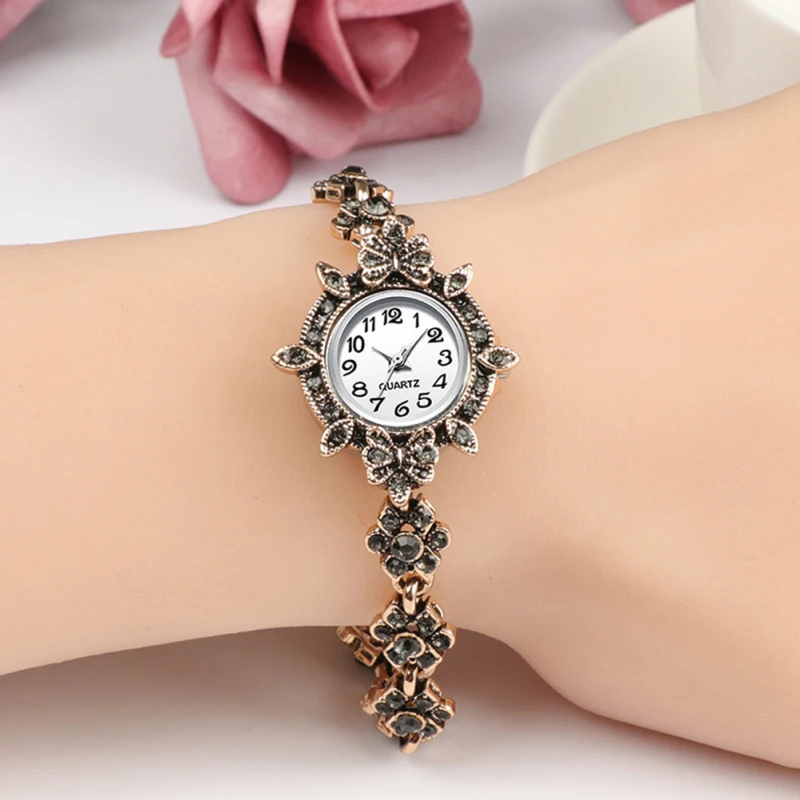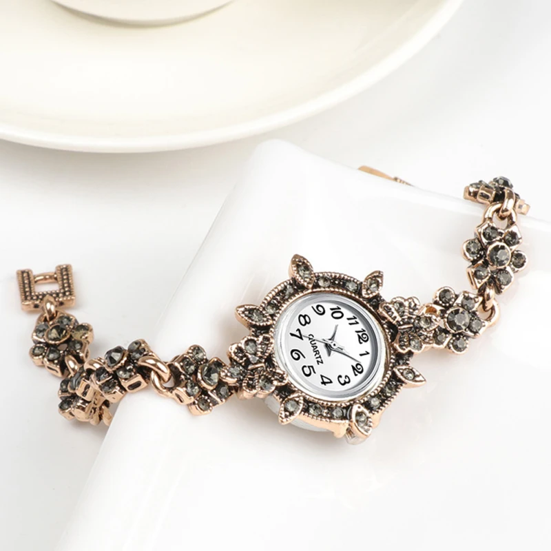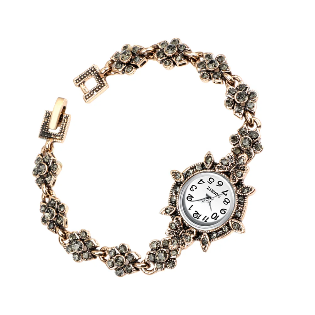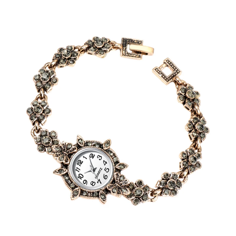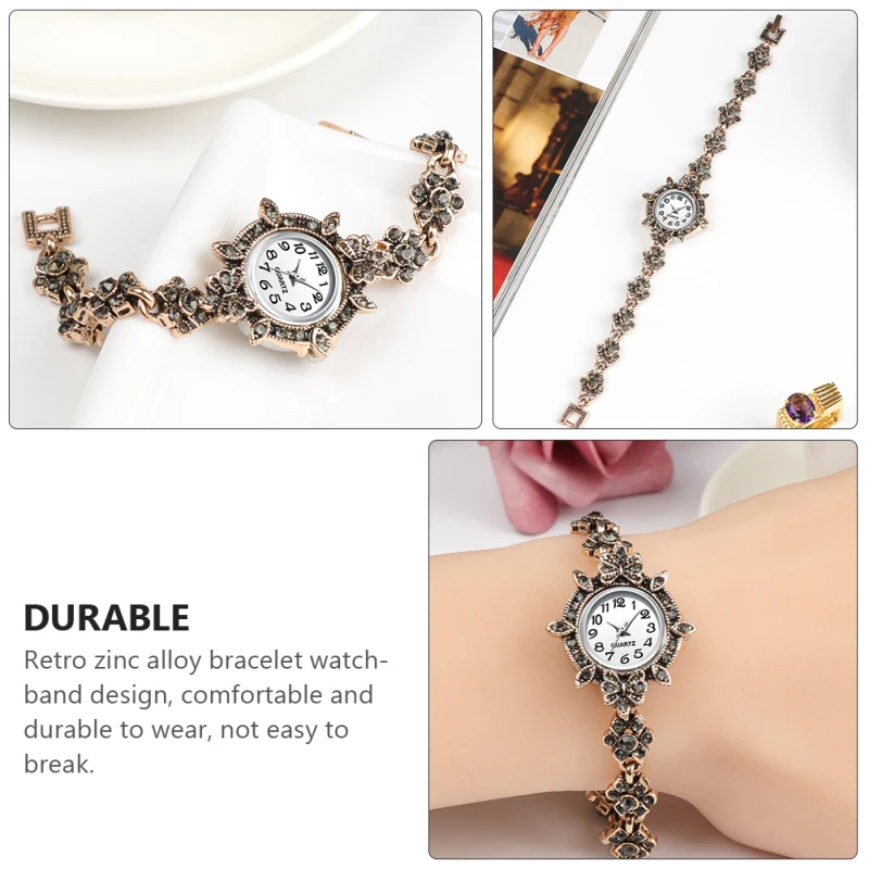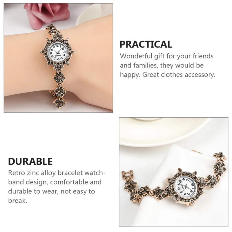 | Description | Montre à quartz avec garniture en strass pour femme, bracelet en diamant, décor de poignet vintage, style rétro d’affaires |
