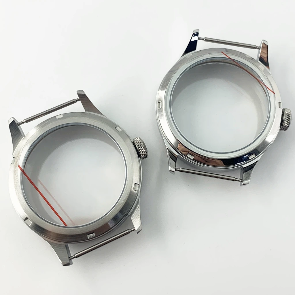 | Inclus | Boîtier stérile en acier inoxydable de 43mm, fond transparent, couronne, support de coussin de mouvement, joint en caoutchouc, 2 barres à ressort |
