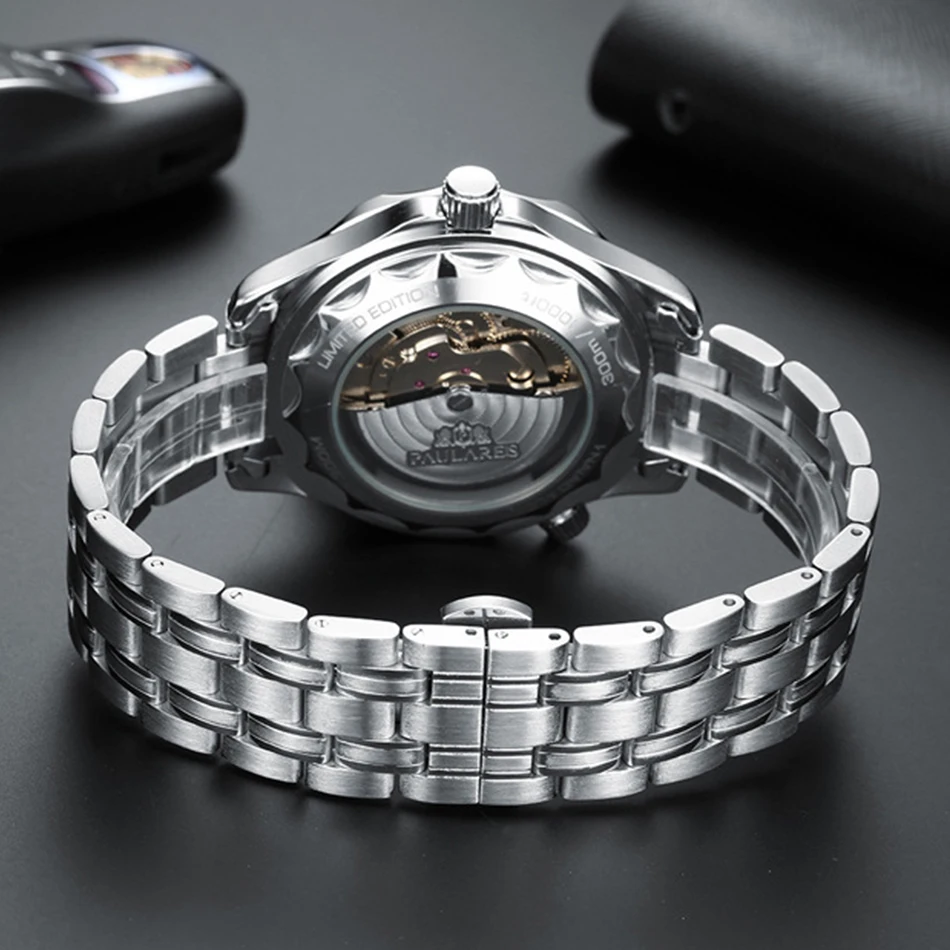 La montre automatique en acier inoxydable pour homme est un choix parfait pour ceux qui recherchent une montre mécanique à tourbillon avec un design de luxe. Sa fonctionnalité étanche et son bracelet en acier inoxydable en font un compagnon de confiance pour les plongeurs et les amateurs de montres de qualité. De plus, son apparence élégante convient à toutes les occasions, qu’elles soient professionnelles ou sociales.