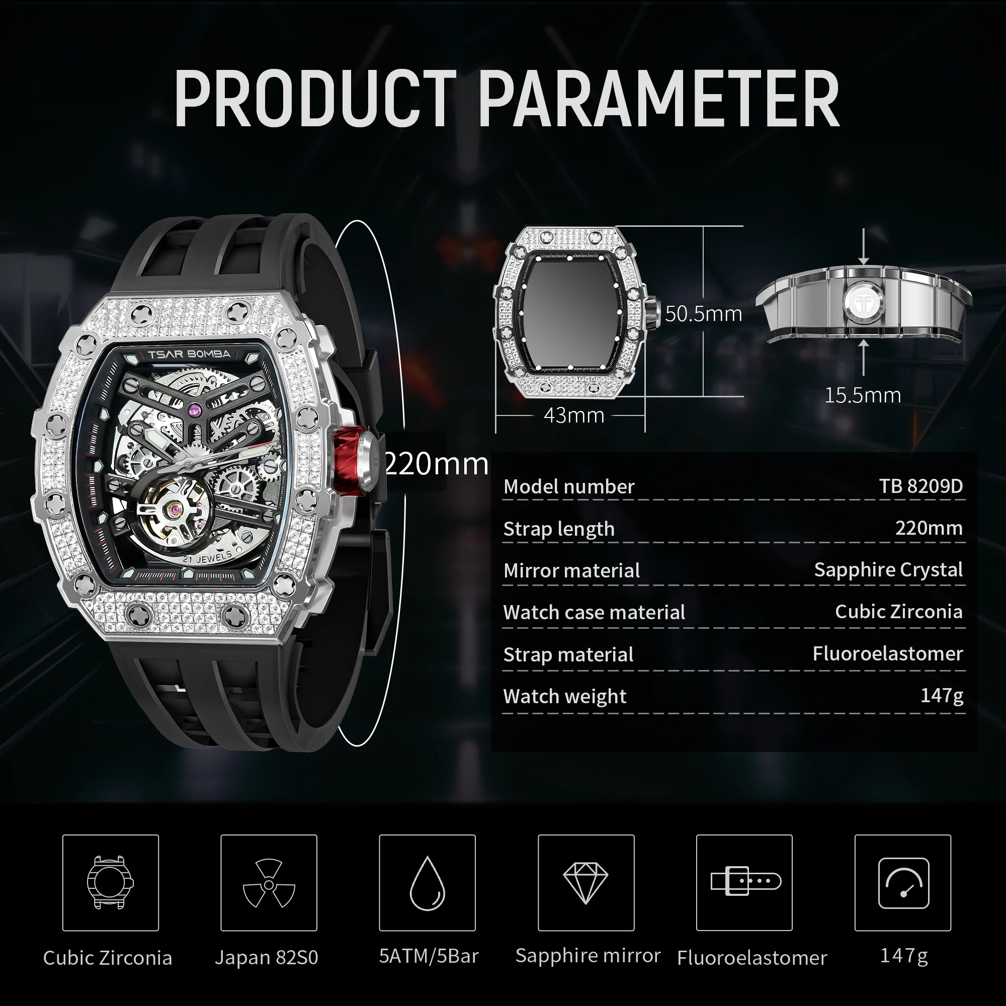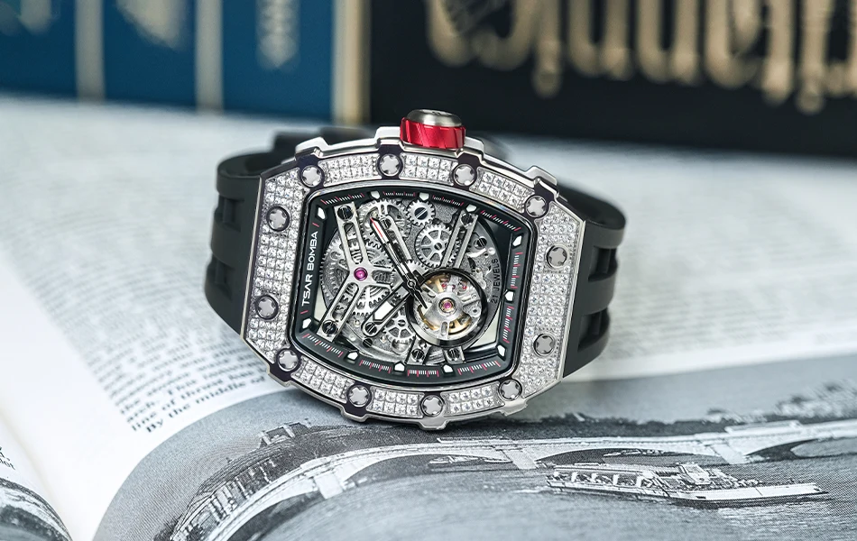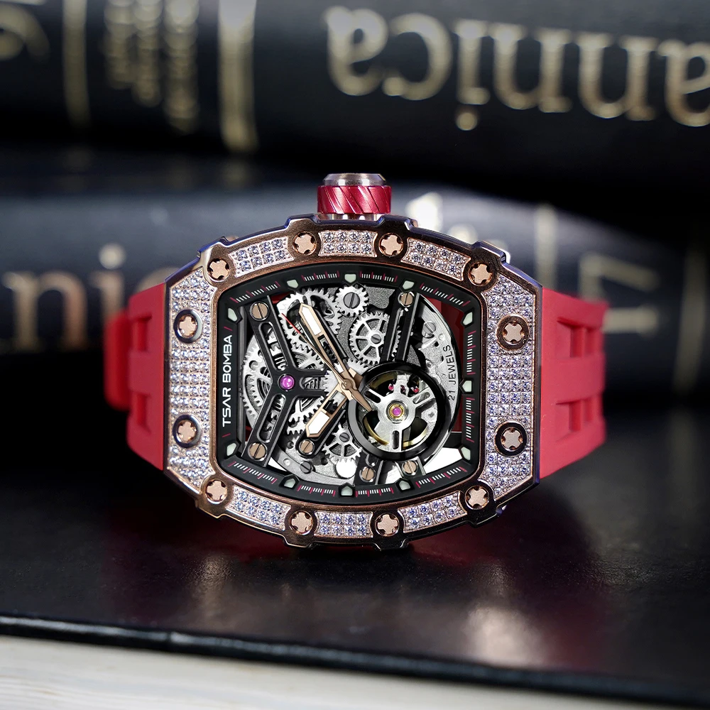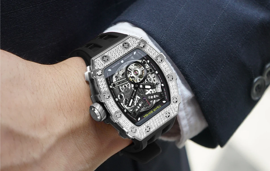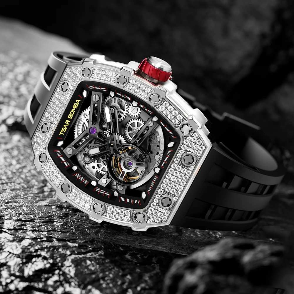 TSAR BOMBA Montre mécanique automatique en diamant pour homme