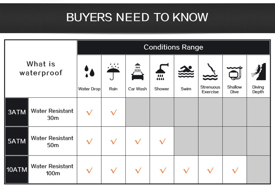 - Résistant à l’eau: 5Bar / 50 mètres