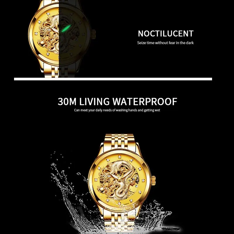 Cadran Dragon 3D chinoisRésistance à l’eau 3ATMMatériau bande acier inoxydableMouvement automatique à remontage automatique