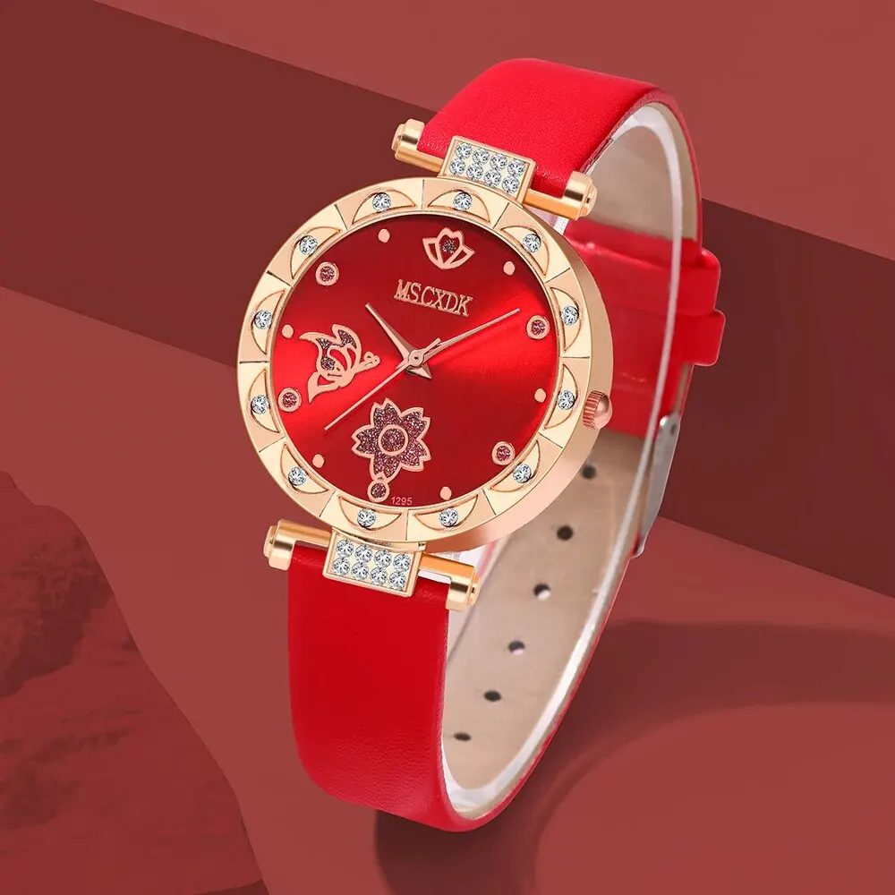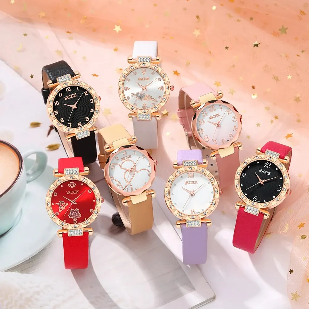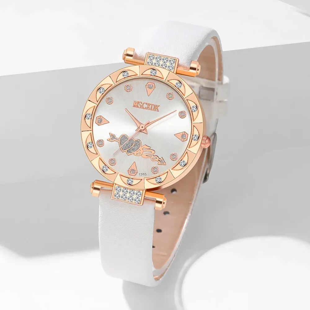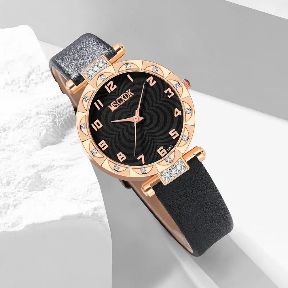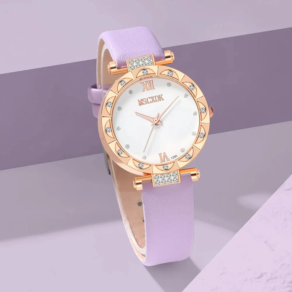 - Ensemble de montre-bracelet à quartz décontractée pour femme avec ceinture en cuir