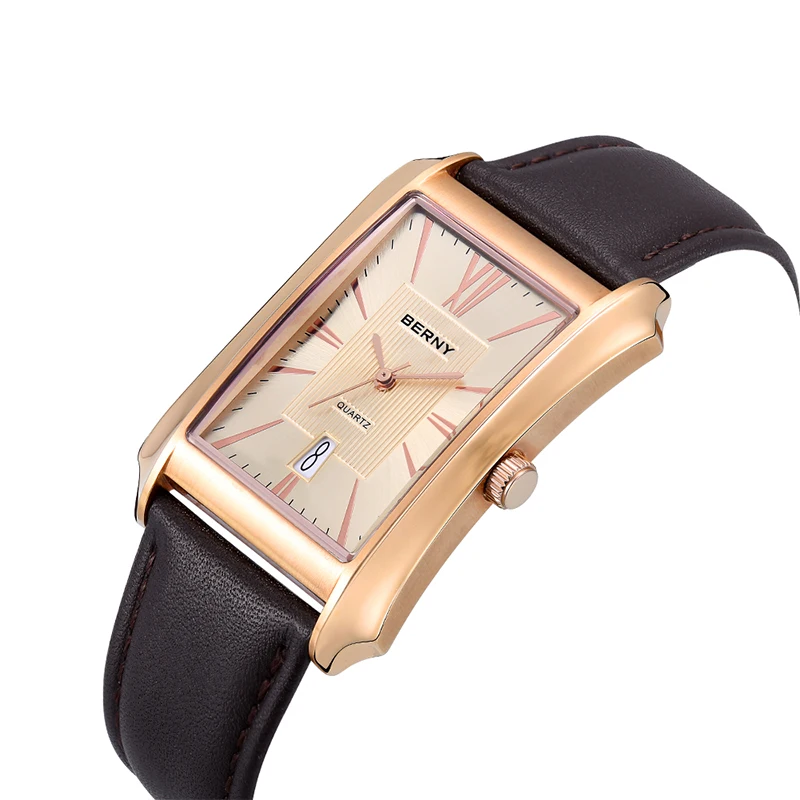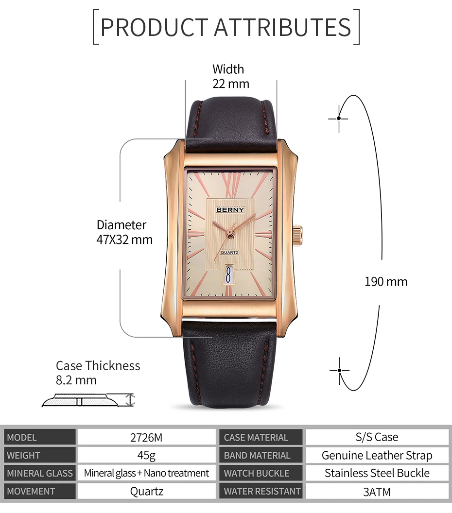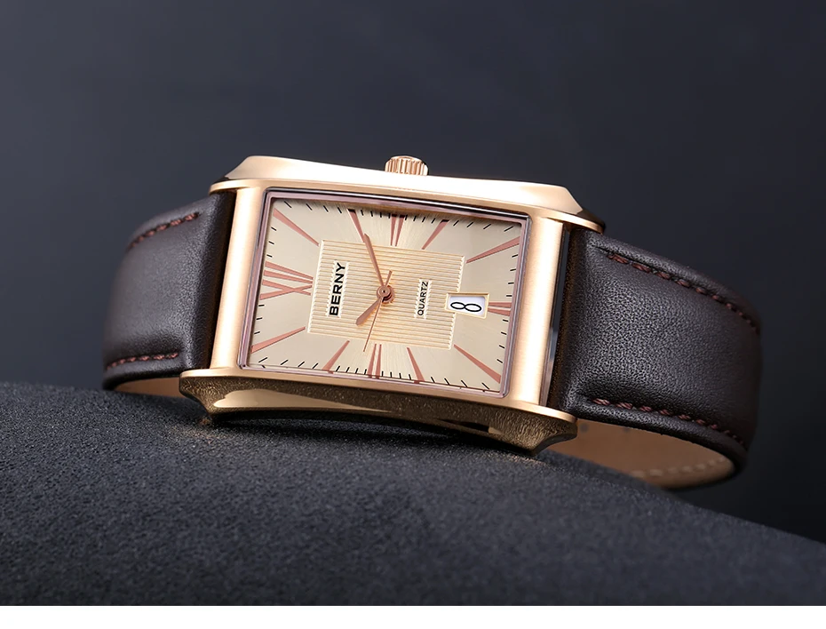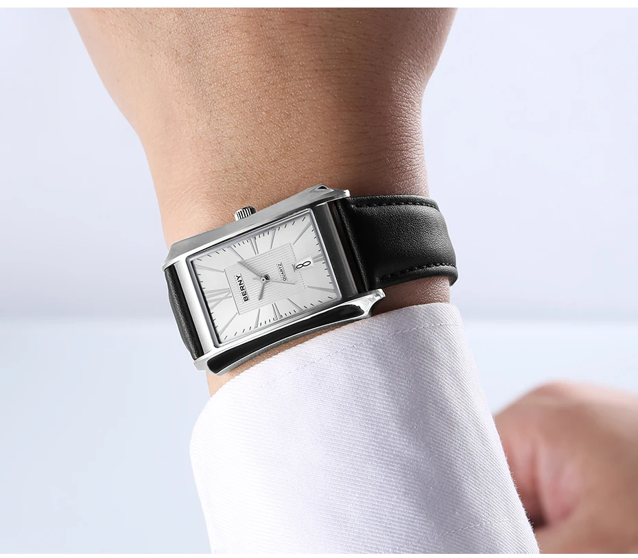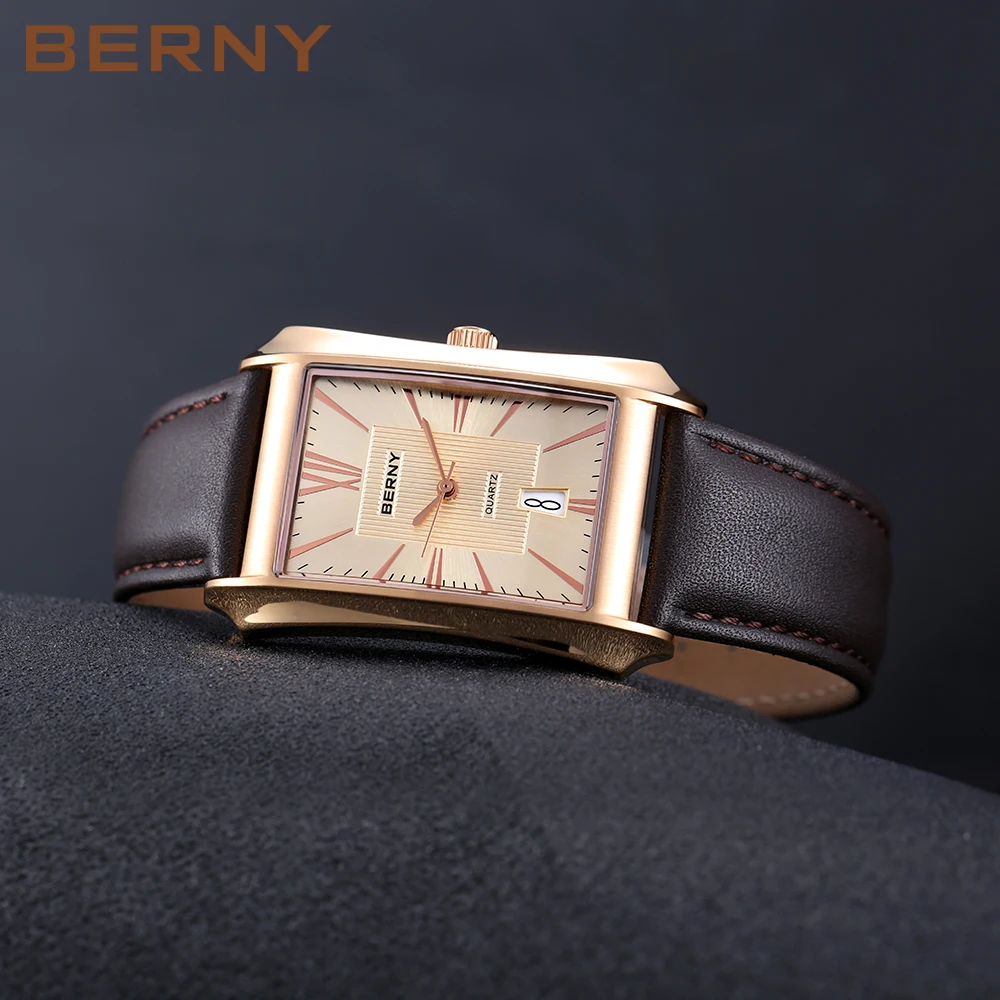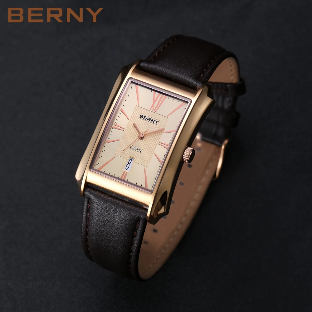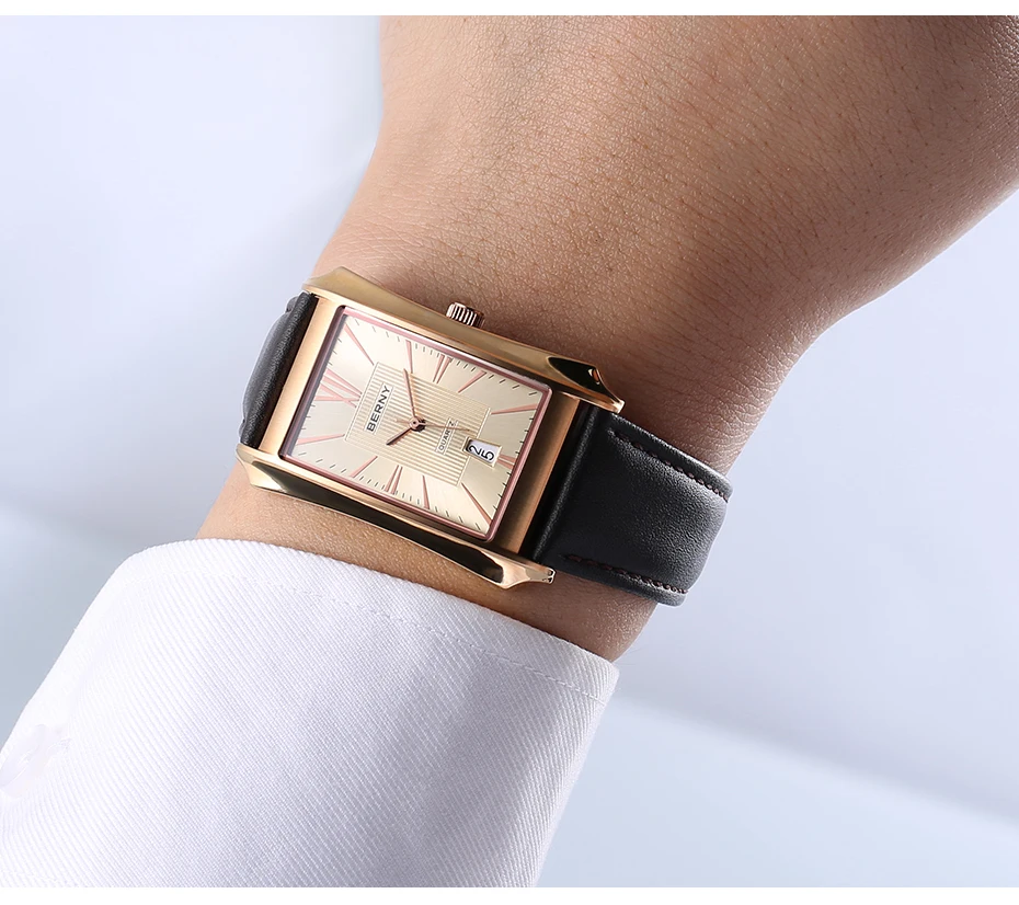 Nous pensons que la montre-bracelet rectangulaire BERNY est un choix élégant pour les hommes à la recherche d’une montre à la fois fonctionnelle et raffinée. Son design luxueux et léger en fait un accessoire polyvalent pouvant être porté au quotidien ou lors d’occasions spéciales. La fonction étanche et le mouvement à quartz SEIKO VJ42A garantissent une grande précision et durabilité. Le bracelet en cuir véritable ajoute une touche de sophistication à l’ensemble. Cependant, il convient de noter que la taille du cadran et du bracelet peut ne pas convenir à tous les poignets, il est donc recommandé de prendre des mesures avant de faire votre achat.