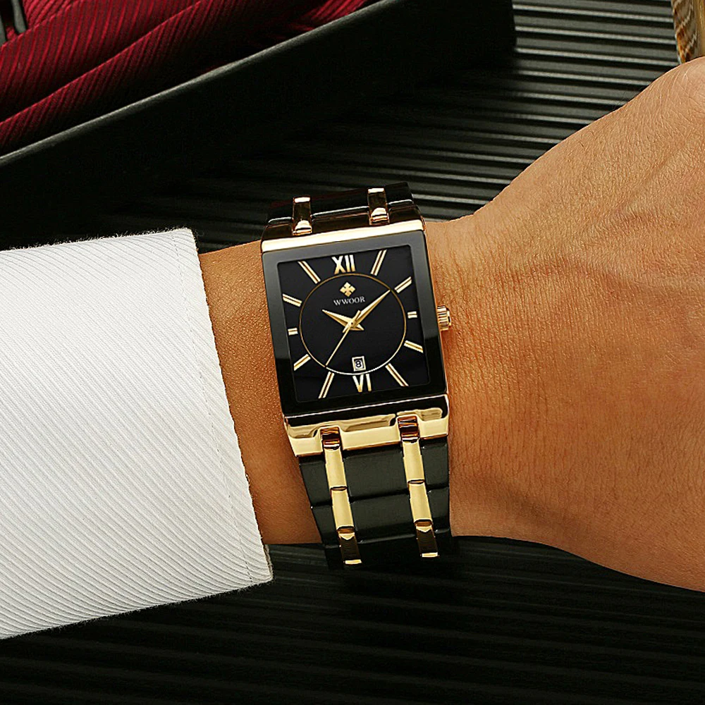 La montre-bracelet de luxe pour hommes WWOOR est un choix parfait pour ceux qui recherchent une montre à la fois élégante et fonctionnelle. Fabriquée en acier inoxydable doré, cette montre a un look sophistiqué et tendance qui convient à toutes les occasions. Avec son mouvement à quartz de haute qualité, elle offre une précision et une fiabilité exceptionnelles. De plus, cette montre est étanche jusqu’à 30 mètres, ce qui signifie qu’elle peut résister à une douche d’eau froide ou à une séance de natation. Le design de style Genève ajoute une touche de sophistication supplémentaire à cette montre-bracelet. Avec un boîtier de 40 mm de diamètre et une épaisseur de 9 mm, cette montre est à la fois légère et confortable à porter. La largeur de bande de 22 mm et la longueur totale de 20 mm la rendent compatible avec la plupart des poignets. Cette montre est livrée avec plusieurs accessoires, y compris un chiffon de nettoyage, un ajusteur de bracelet de montre et une boîte cadeau WWOOR (si choisie).