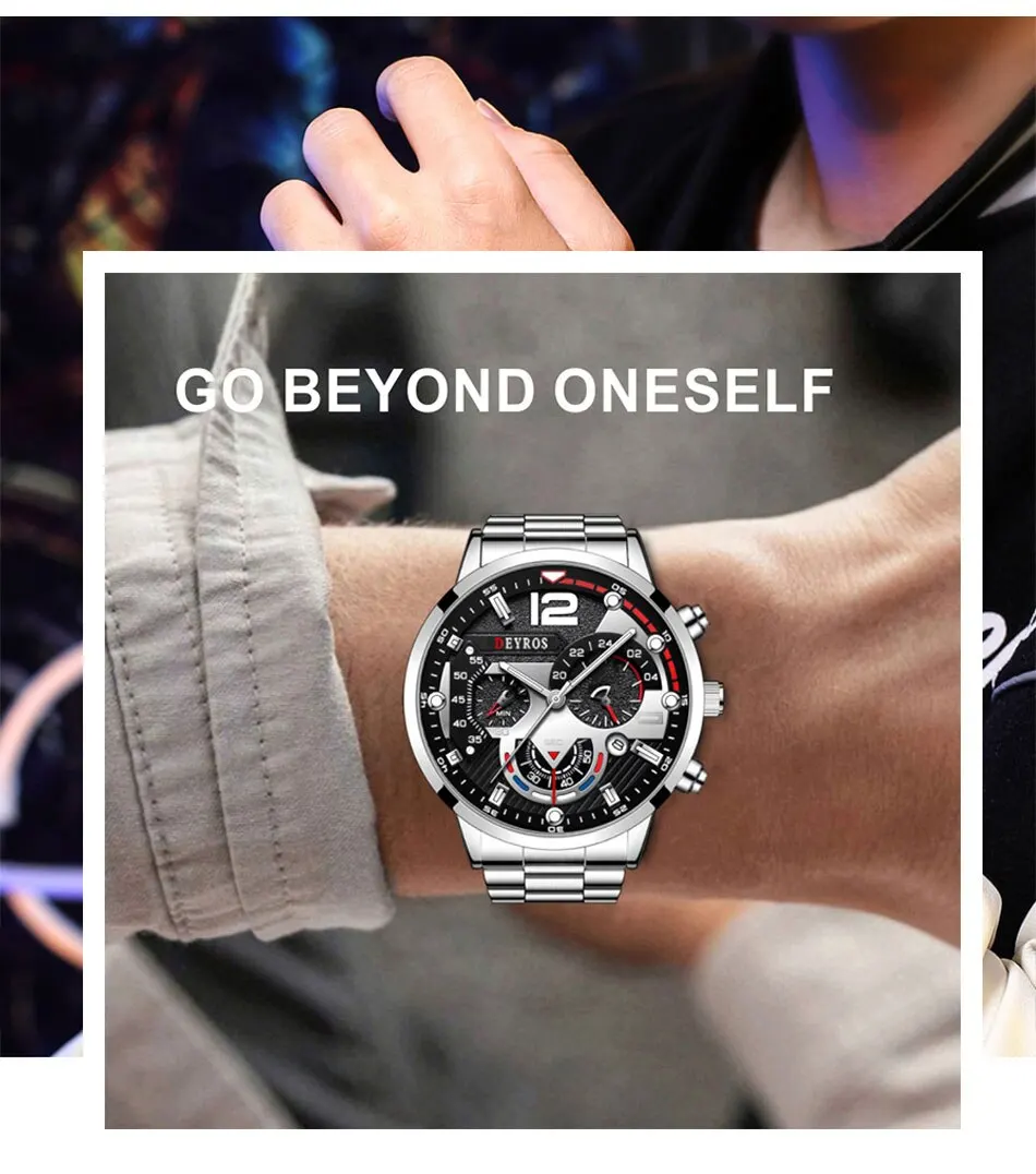 Test et avis sur la montre-bracelet à quartz de luxe en acier inoxydable pour hommes, horloge Shoous, calendrier, affaires, décontracté, mode