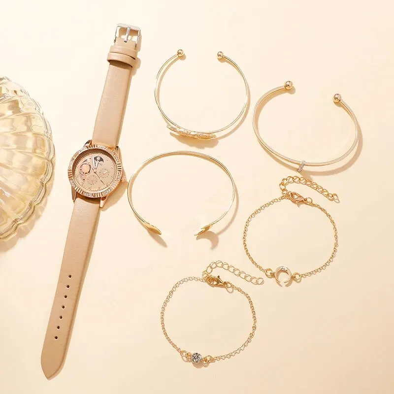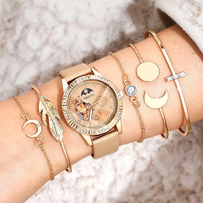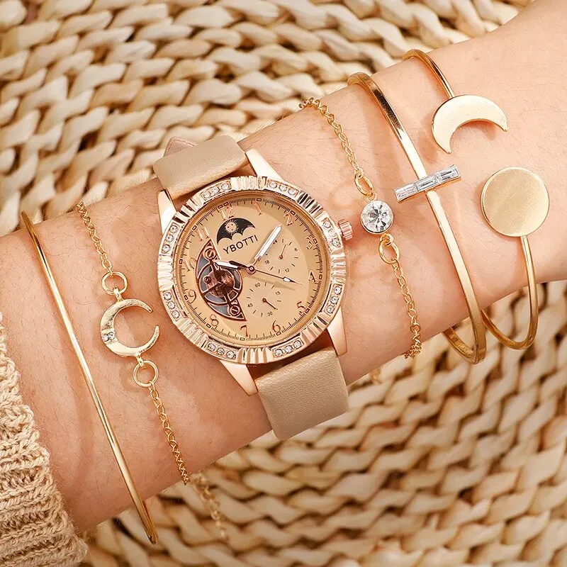 Montre à quartz à cadran mécanique pour femme, design de marque, montre-bracelet pour femme, ensemble de bracelets habnommée, mode féminine