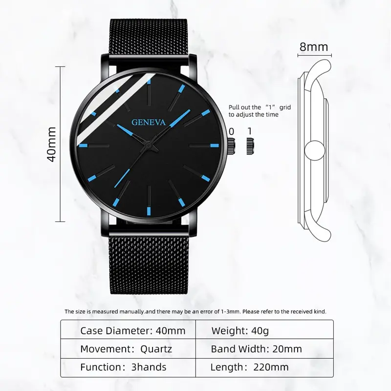 Voici les points importants à retenir de la Montre-bracelet à quartz ultra fine pour homme, acier inoxydable, ceinture en maille, montres d’affaires simples, mode minimaliste :