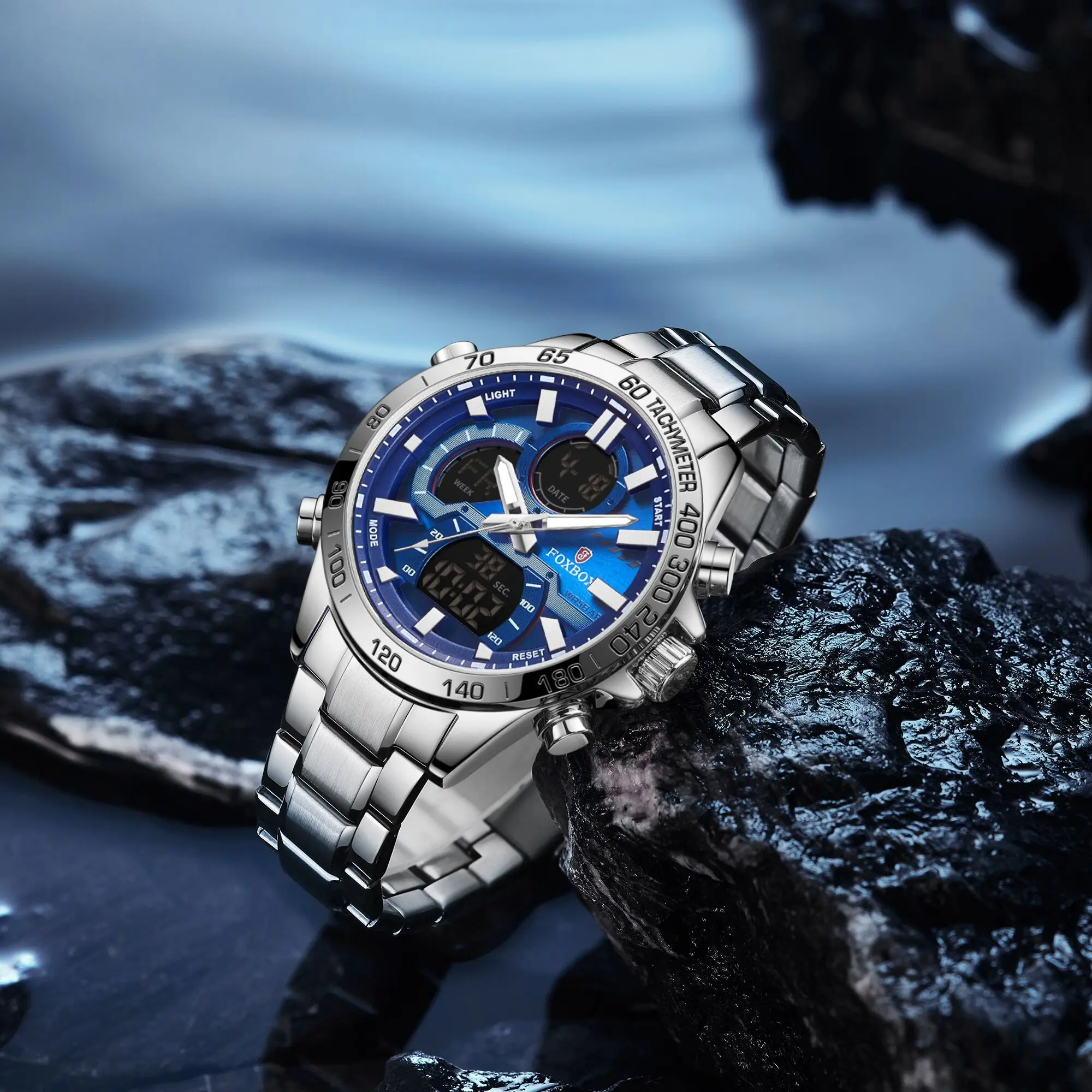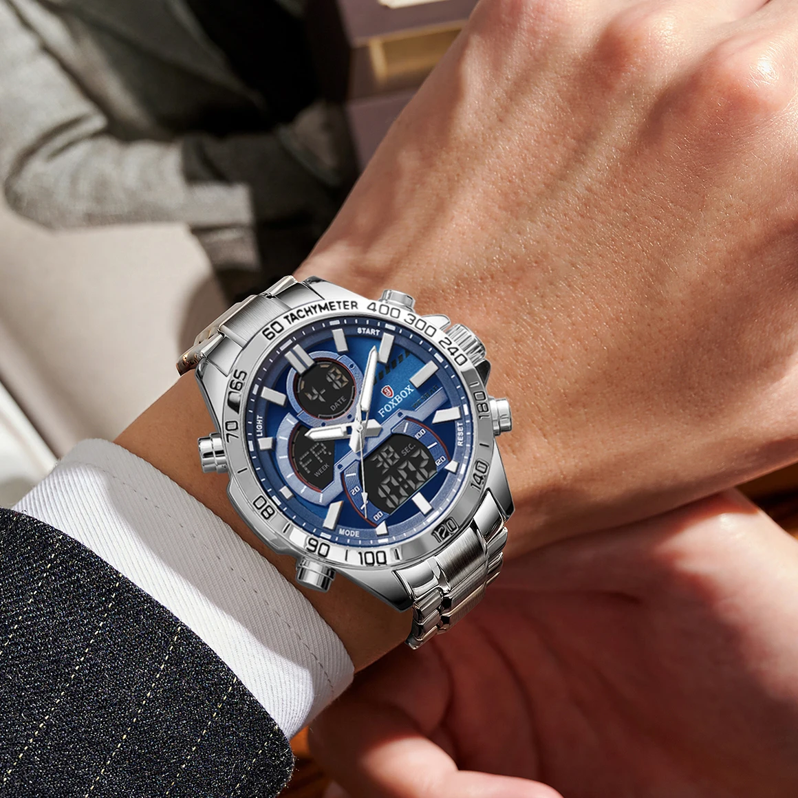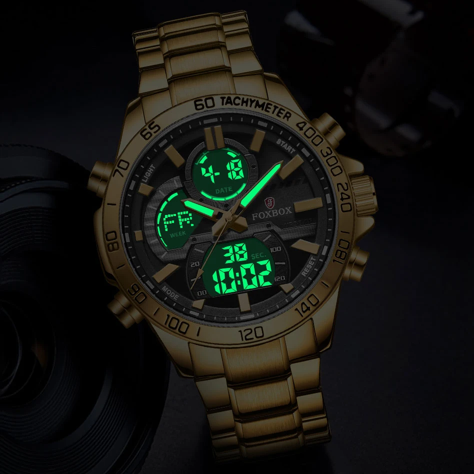 FoxBox luxe Design hommes montres à Quartz mode affaires chronographe en acier inoxydable 5Bar étanche 3C montre-bracelet reloj hombre