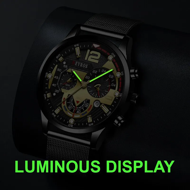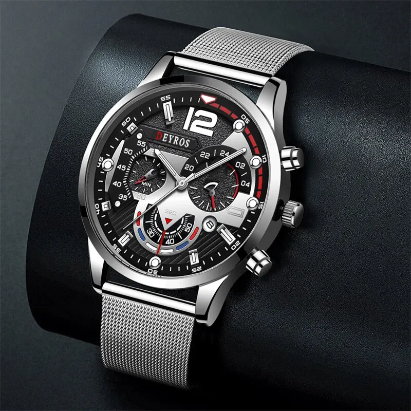 Test et Avis sur la Montre-bracelet à quartz en acier inoxydable pour hommes, montre d’affaires, ceinture en maille, horloge Shoous, calendrier décontracté, mode de luxe, 2023