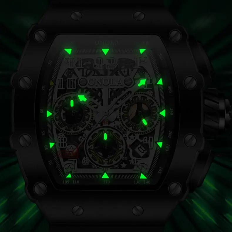 La montre-bracelet verte de luxe pour homme ONOLA est un mélange parfait de style et de fonctionnalités. Ce modèle de la top marque ONOLA est conçu dans un style tonneau à la mode, idéal pour les amateurs de sport et de mode. Elle est entièrement neuve et de haute qualité.