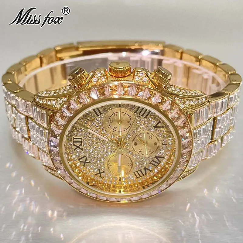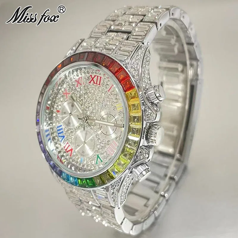 La montre carrée arc-en-ciel en diamant pour hommes de la marque MISSFOX est un accessoire de luxe qui arbore un style élégant et à la mode. Cette montre est 100% neuve et de haute qualité avec un mouvement à quartz précis pour une précision parfaite de l’heure. Elle est également résistante à l’eau jusqu’à 30M, ce qui la rend adaptée à un usage quotidien. Le boîtier de la montre est plaqué en or 18K nano, ce qui garantit que sa couleur ne se décolore pas avec le temps. Cette montre serait un cadeau idéal pour des occasions spéciales telles que Noël, un anniversaire, une fête, un anniversaire ou une tenue de rencontre. Le diamètre du boîtier est d’environ 4.2cm, l’épaisseur du boîtier est d’environ 1 cm et la largeur de bande est de 20 cm. La longueur du bracelet est d’environ 24.50cm.