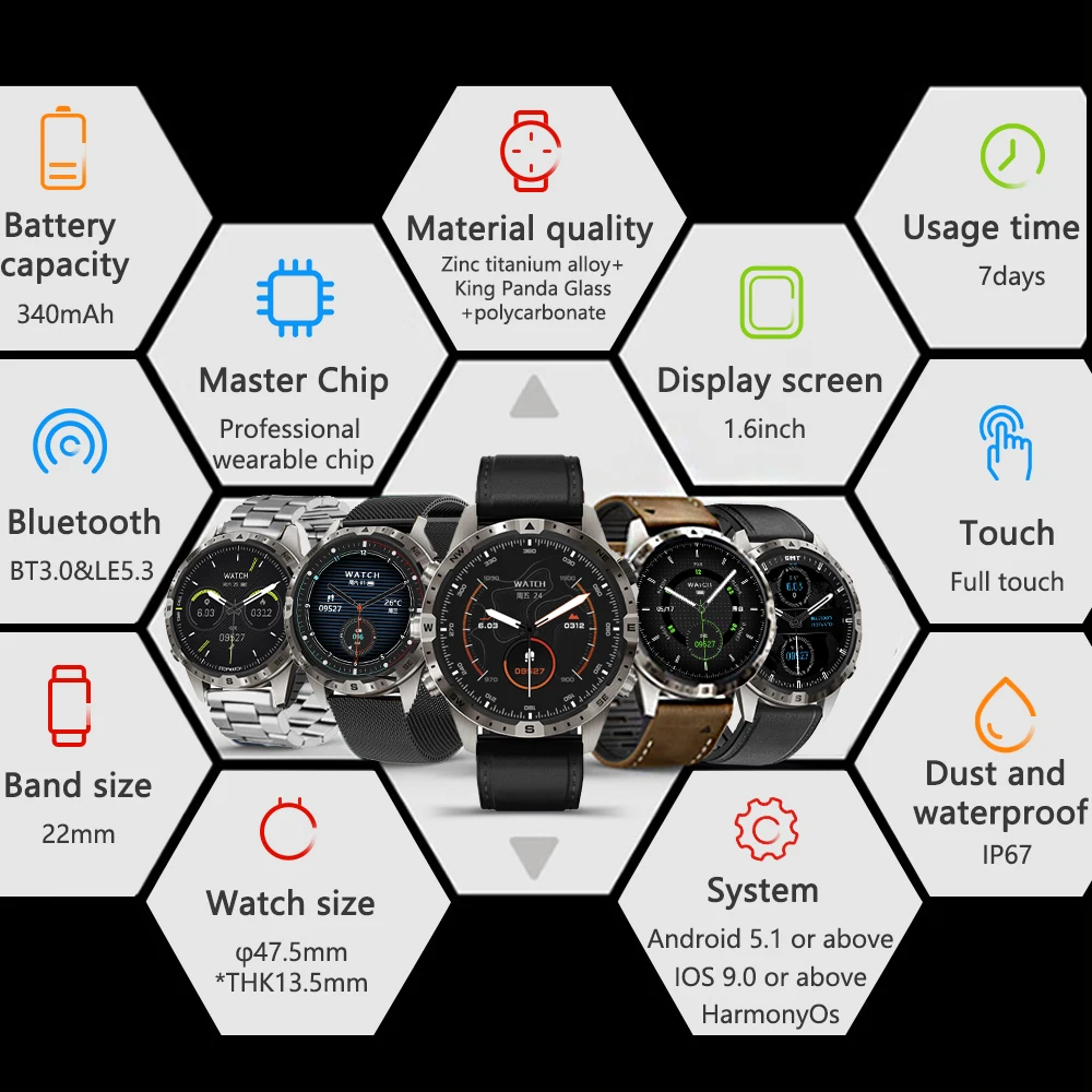 La montre connectée de sport GPS pour homme est dotée de nombreuses caractéristiques intéressantes. Son grand écran ultra-clair de 1.6 pouces offre une expérience de visualisation ultime, tandis que sa batterie de 6.340mAh assure une forte endurance. Avec plus de 100 modes sportifs, cette montre est un choix idéal pour les amateurs de sports de plein air. De plus, elle est étanche et dispose d’une fonction de mesure de la fréquence cardiaque et de l’oxygène dans le sang. Le contrôle d’accès NFC permet également d’ouvrir la porte en soulevant simplement le poignet. Enfin, la montre est compatible avec différents smartphones et offre une multitude d’autres fonctionnalités telles que la notification de messages, la surveillance du sommeil et la télécommande photo.
