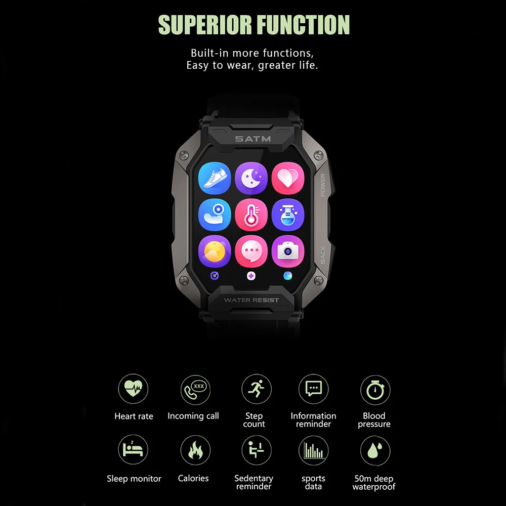 La montre Ultra Sports est équipée d’un écran carré haute définition de 1.71 pouces avec une résolution de 280×320 pixels, offrant une expérience visuelle claire et nette. Elle dispose d’une mémoire de 128M pour stocker les données d’exercice et une