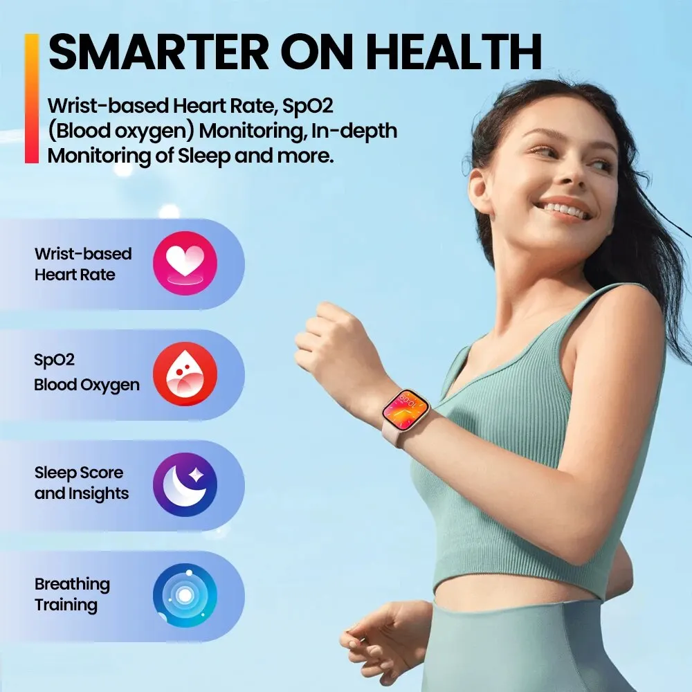 • Cette montre intelligente propose des fonctionnalités avancées de surveillance de la santé et du fitness, y compris la mesure de la saturation en oxygène du sang, la surveillance de la fréquence cardiaque, le suivi du sommeil et plus encore.