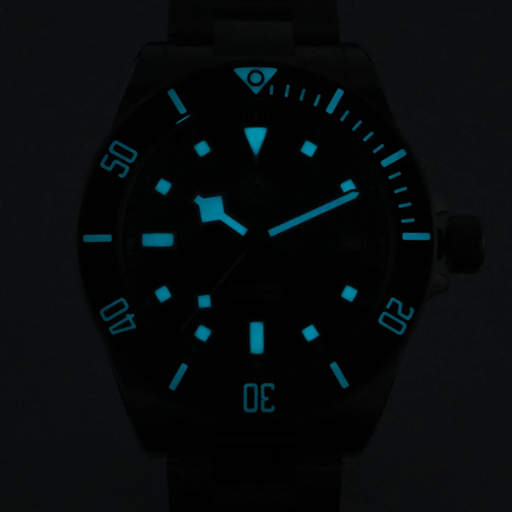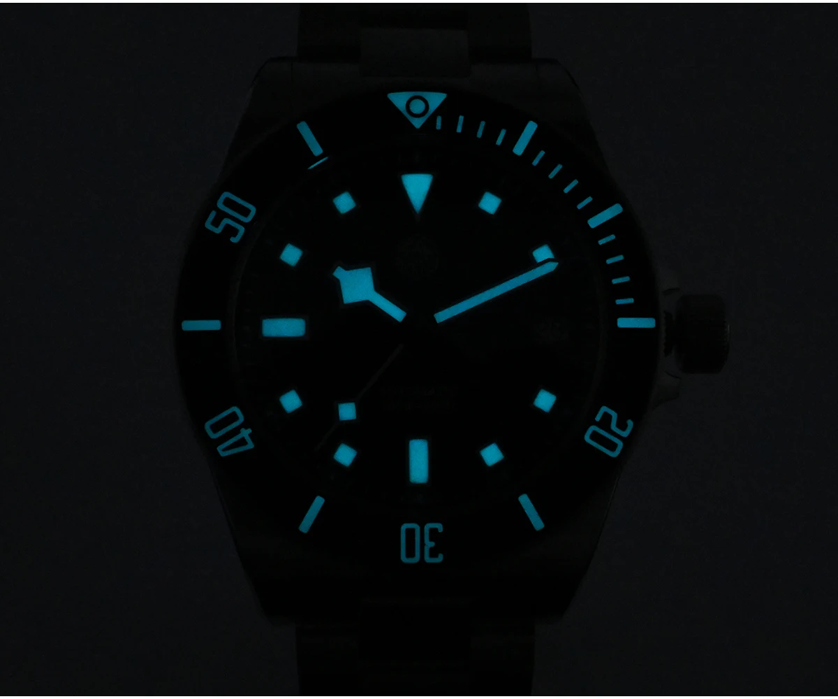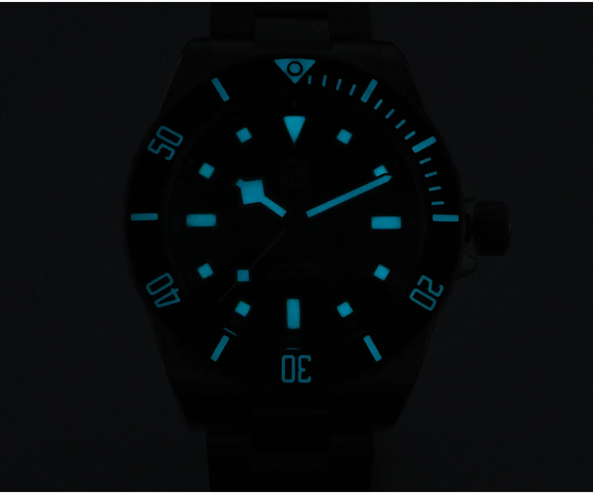 - Lunette: Lunette en céramique mate à 120 clics unidirectionnels avec marqueurs lumineux BGW9