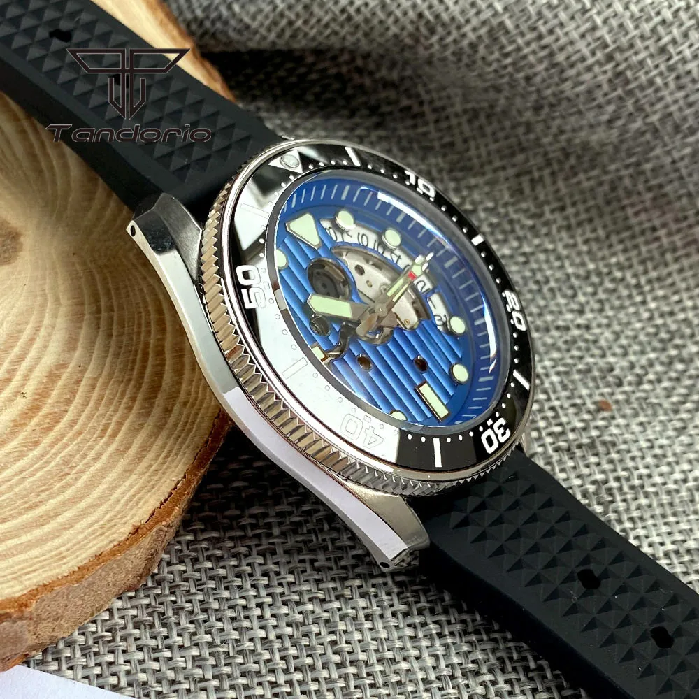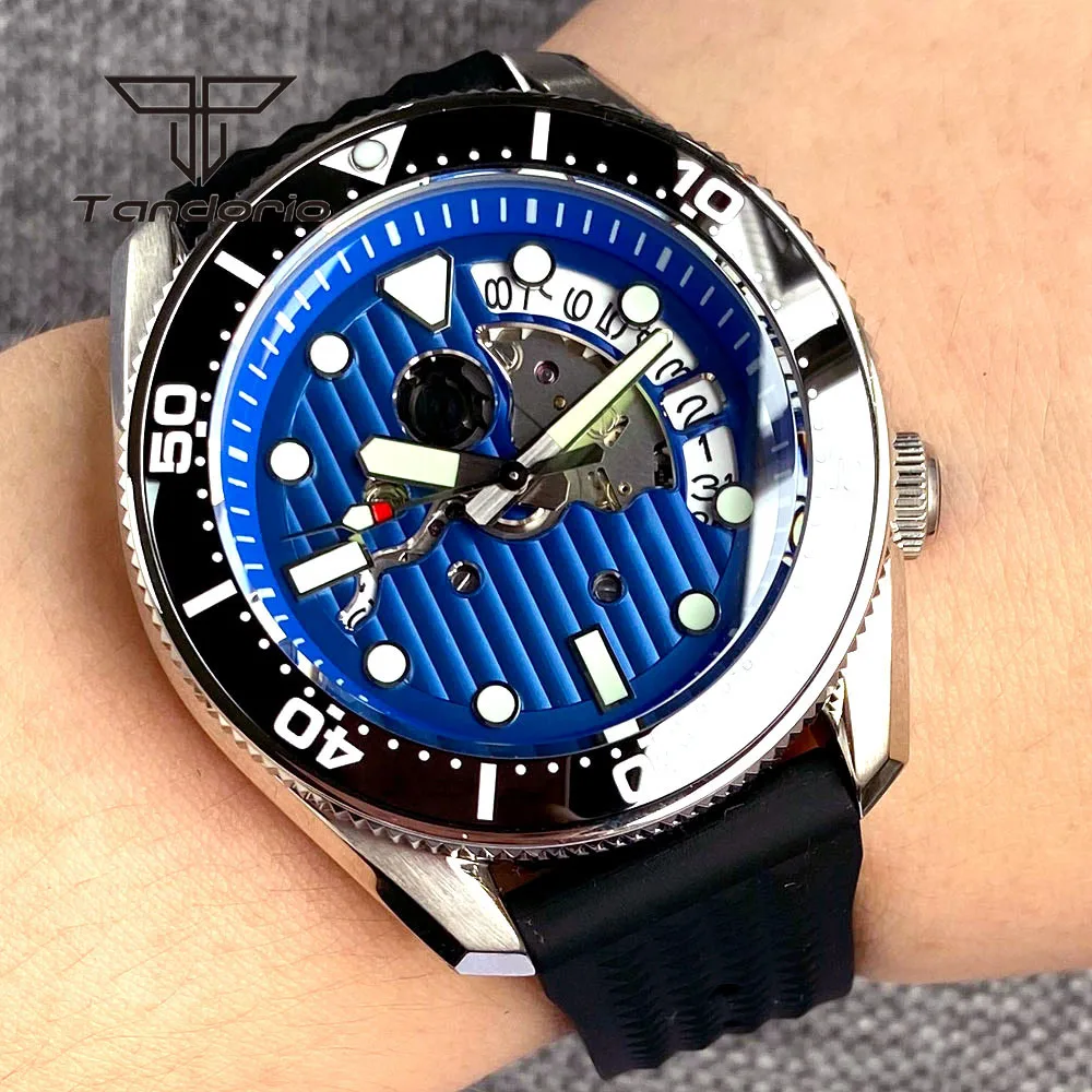 La montre Tandorio-Montre existent de Plongée NH35A pour Homme, Cadran Creux Date SBDX001 est équipée du mouvement automatique 24 bijoux NH35A qui garantit une précision et une fiabilité optimales. Le boîtier en acier inoxydable 316L a une taille de 42.5mm de diamètre et 16mm d’épaisseur. La longueur de l’ergot à l’ergot est de 45mm. Le cadran est disponible en noir ou en bleu avec des