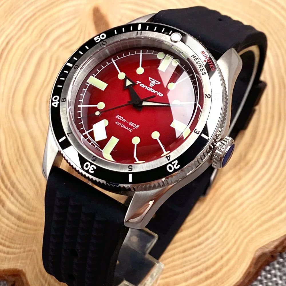 La montre de plongée Tandorio est équipée d’un mouvement NH35A/PT5000 automatique. Cela signifie qu’elle se remonte automatiquement grâce aux mouvements du poignet, ce qui la rend pratique à utiliser au quotidien.