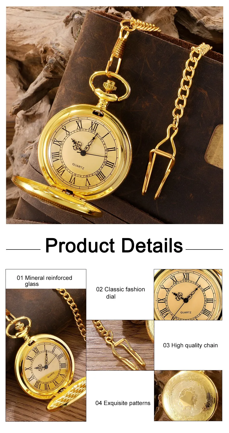 Voici les points importants à retenir de la Montre de Poche à Quartz avec Numérisation Romaine pour Homme et Femme :