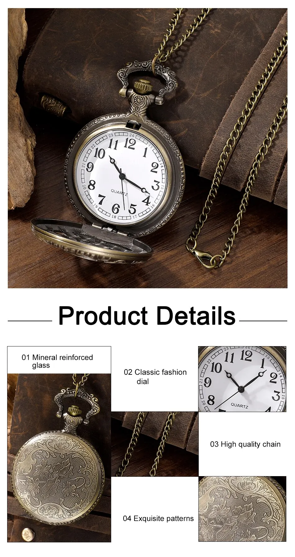 - Acier inoxydable durable Bezel : La lunette fixe de cette montre de poche est faite d’acier inoxydable de haute qualité, assurant la durabilité et la longévité.