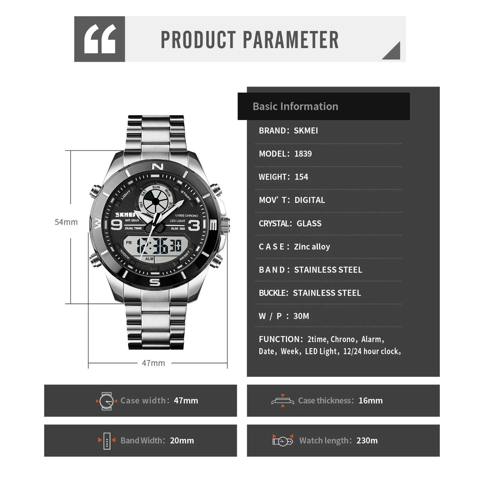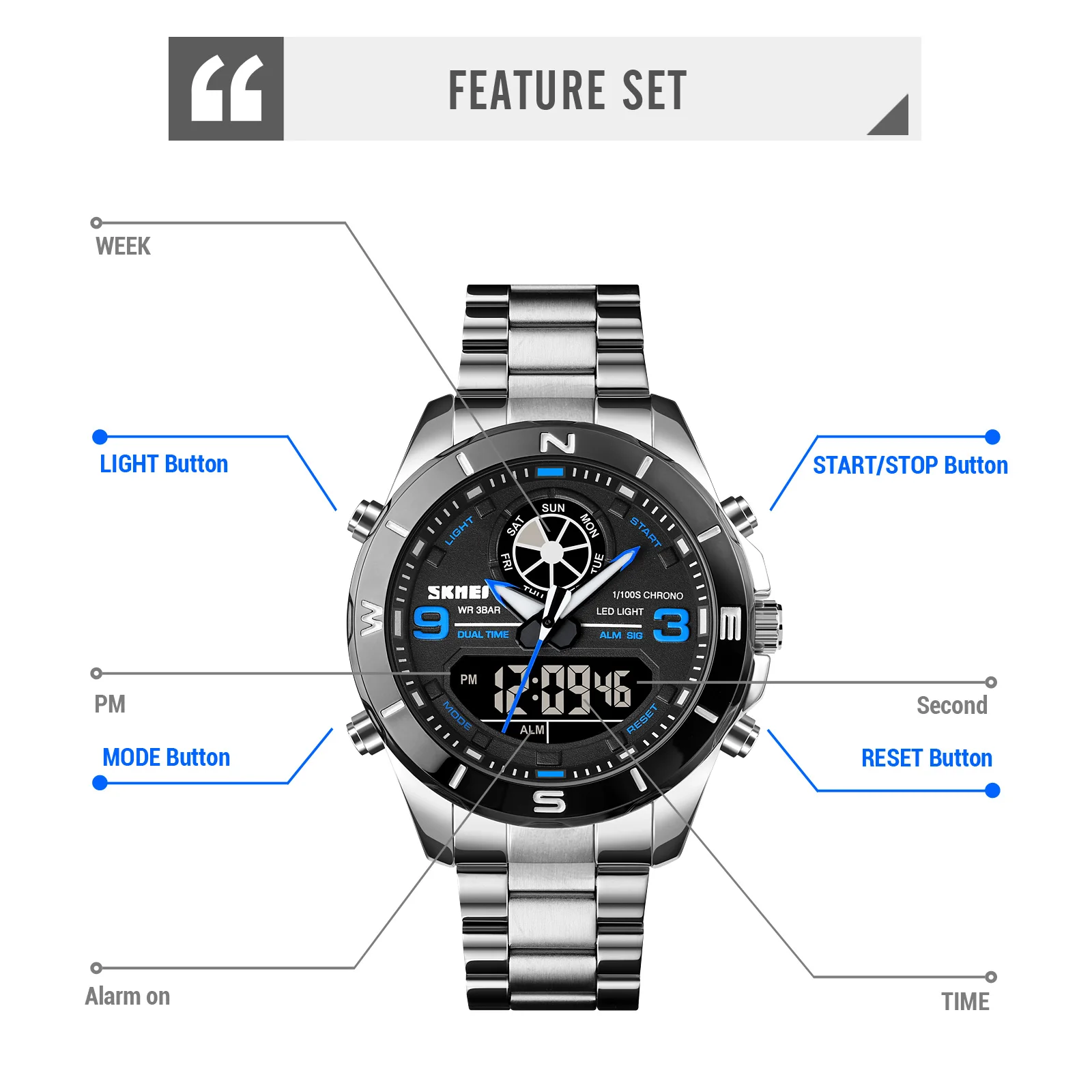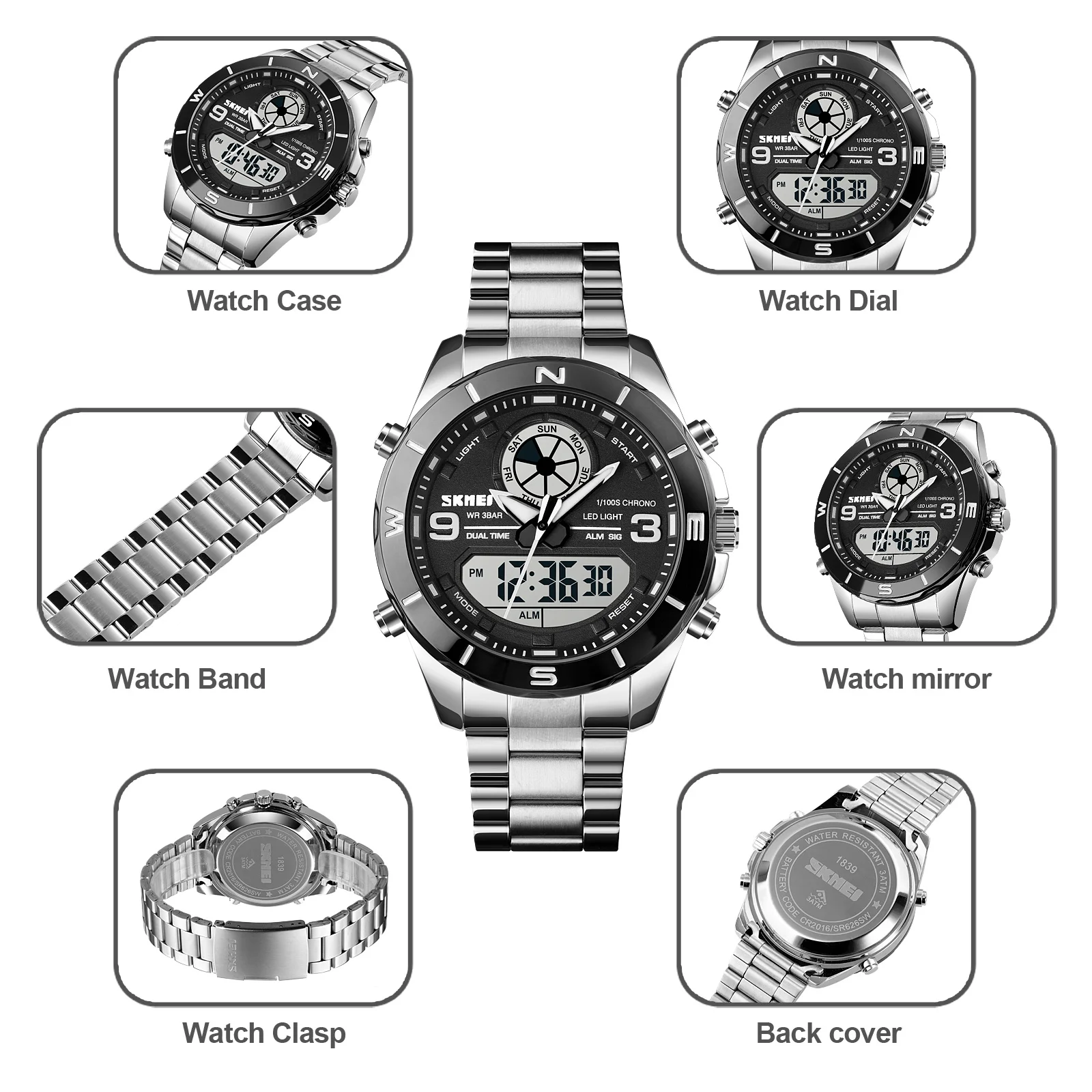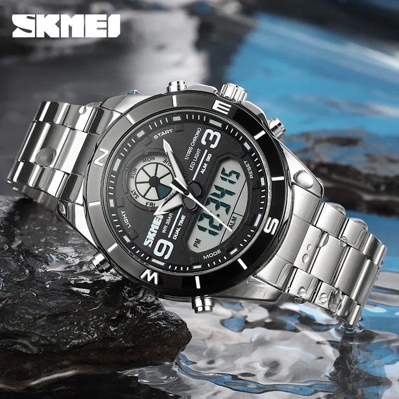 La montre de sport SKMEI en acier inoxydable pour hommes est une montre de luxe, à la mode et polyvalente. Elle convient parfaitement pour les activités sportives telles que la course à pied et le cyclisme, mais peut aussi être portée au quotidien grâce à son design décontracté.