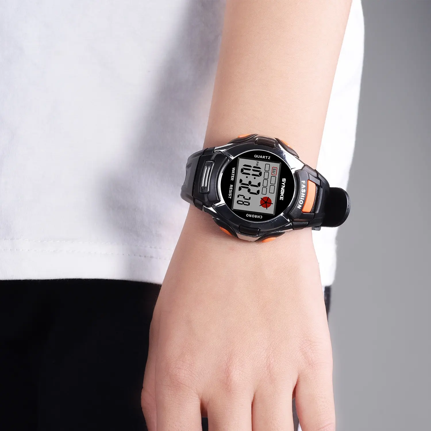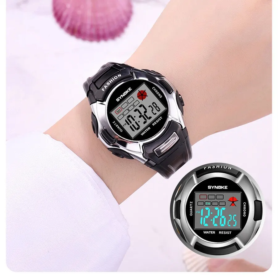 - Affichage lumineux coloré : La montre dispose d’un écran lumineux coloré qui facilite la lecture de l’heure, même dans des conditions de faible luminosité, vous assurant que vous êtes toujours dans les délais.