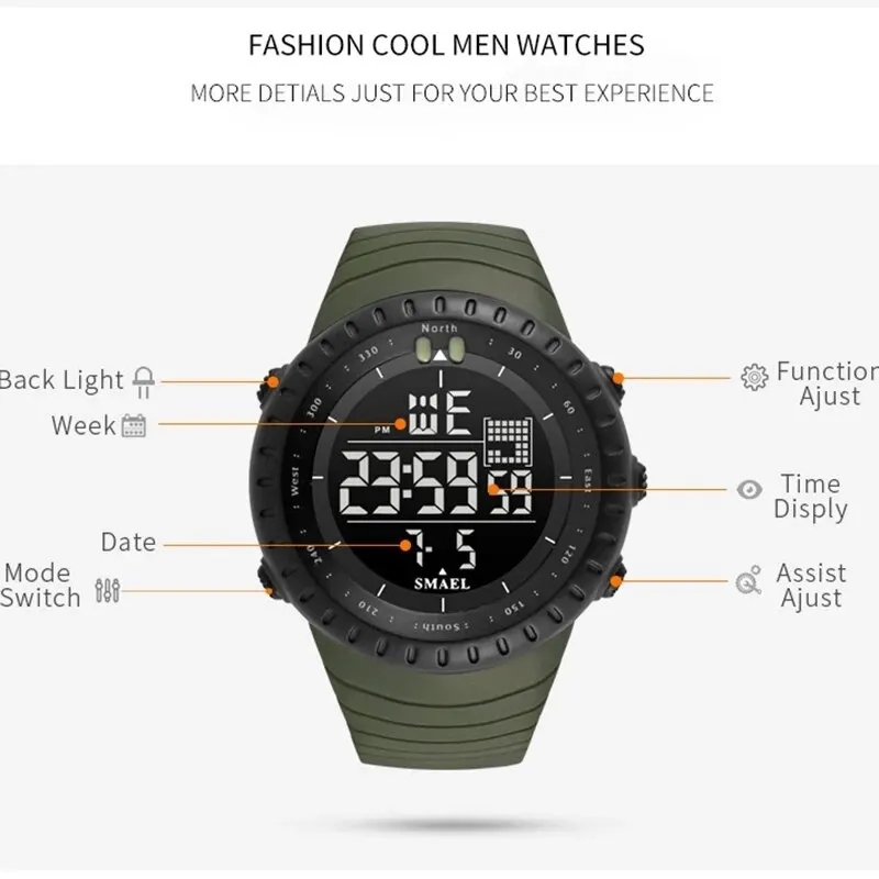 La montre électronique étanche SMAEL pour homme avec grand cadran, alarme LED numérique et fonctionnalités sportives est un excellent choix pour ceux qui ont besoin d’une montre robuste et fiable pour leurs activités de plein air. Le grand cadran facilite la lecture de l’heure, même dans des conditions de faible luminosité, tandis que la résistance à l’eau de 5Bar permet de l’utiliser lors de sports aquatiques tels que la natation. La fonction d’alarme LED numérique est pratique pour se rappeler les rendez-vous importants. De plus, la montre est conçue pour le sport, avec un boîtier rond et une bande PU durable. Cependant, il est recommandé de ne pas porter la montre lors de la natation ou de la plongée, et de ne pas appuyer sur les boutons sous l’eau. En résumé, la montre électronique SMAEL est un bon choix pour les amateurs de sport à la recherche d’une montre polyvalente et durable.