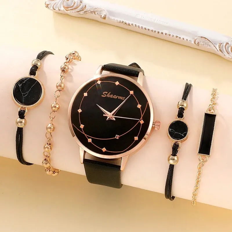 Cette montre « 5pcs Set Femmes Mode Montre Casual Ceinture En Cuir Montres Dames Ciel Étoilé Cadran Quartz Montres Robe Horloge Reloj Mujer » est un excellent choix pour les femmes qui recherchent un accessoire élégant et polyvalent. J’apprécie particulièrement le design du cadran ciel étoilé et la ceinture en cuir confortable. Le mouvement à quartz garantit également un chronométrage précis, ce qui est essentiel pour une utilisation quotidienne. Cependant, il faut noter que cette montre n’est pas étanche à l’eau, il est donc préférable d’éviter de l’immerger dans l’eau. Dans l’ensemble, c’est un produit de qualité qui complétera parfaitement n’importe quelle tenue.