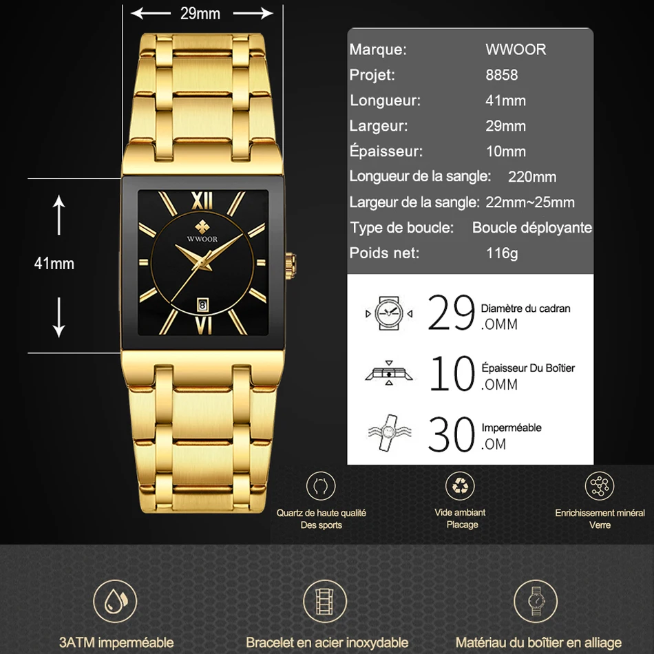 WWOOR Gevena – montre carrée pour hommes avec Date automatique