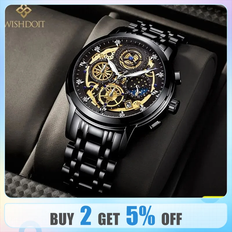 Test et Avis : WISHDOIT-Montre étanche en acier inoxydable pour homme