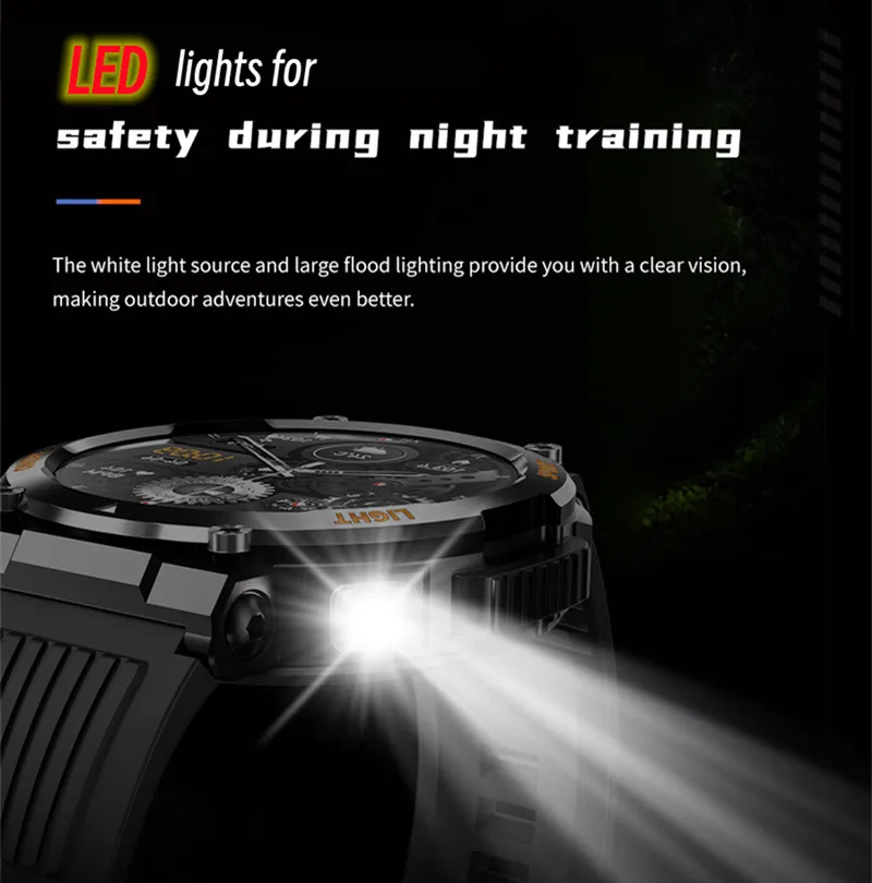 La montre intelligente étanche pour hommes est un produit qui offre de nombreuses fonctionnalités pour les amateurs de sports de plein air. Elle est dotée d’une lampe de poche LED qui permet d’éclairer votre chemin dans l’obscurité. De plus, elle est équipée d’un suivi de la condition physique incluant la fréquence cardiaque et la pression artérielle. La montre possède également une boussole pour vous aider à vous orienter lors de vos aventures en plein air. Avec une protection IP67, elle est résistante à l’eau et peut même être utilisée lors de vos nages. Enfin, elle est compatible avec les systèmes Android 5.1/IOS 8.2 ou supérieurs.