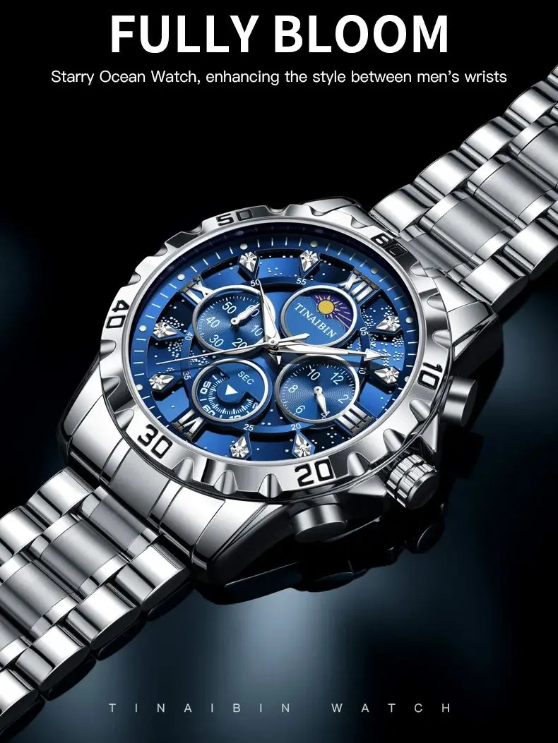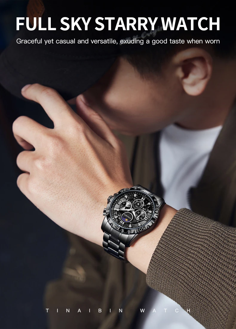 La montre étanche en acier pour homme, chronographe Moonswatch, nuit étoilée créative, cadran personnalisé, affaires de luxe Shoous est un excellent choix pour les hommes à la recherche d’une montre élégante et fonctionnelle. Avec sa résistance à l’eau de 3Bar, elle peut être portée lors d’activités quotidiennes et même lors d’activités de plein air. L’utilisation de matériaux de haute qualité tels que l’acier inoxydable et le Hardlex garantit la durabilité de la montre, et les aiguilles et le cadran lumineux permettent une lecture facile de l’heure même dans l’obscurité. Cependant, il est important de noter qu’il n’y a pas encore d’avis de clients disponibles pour évaluer la qualité réelle du produit.