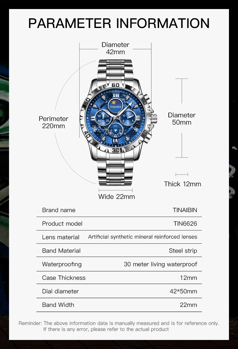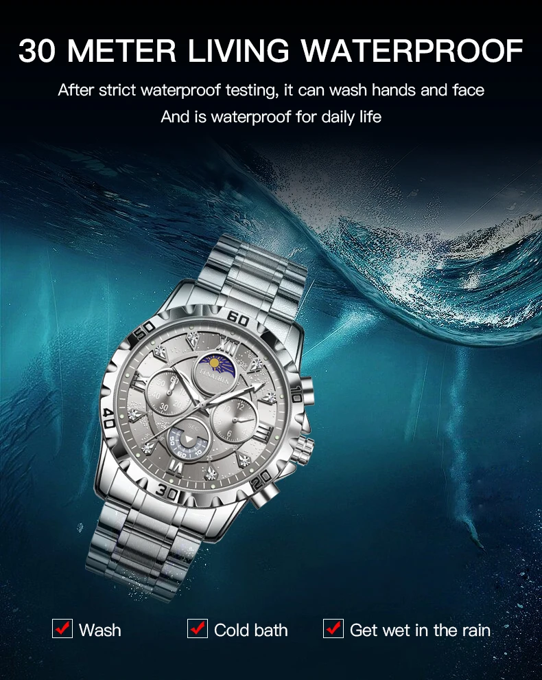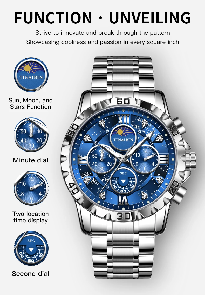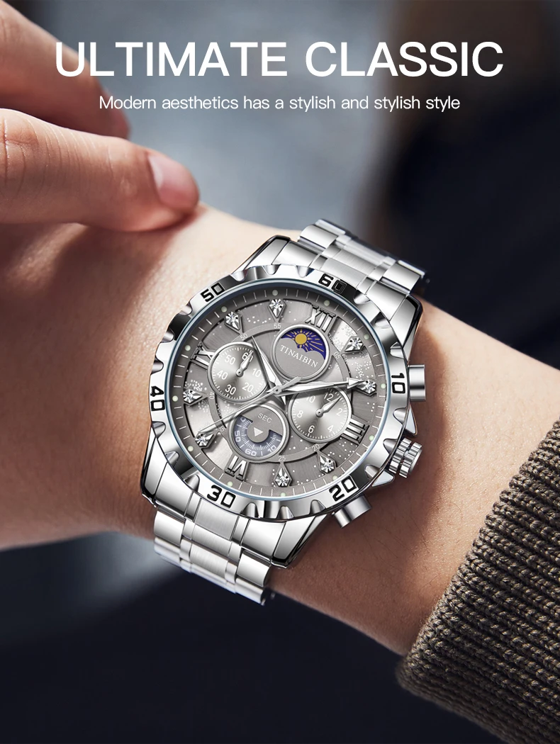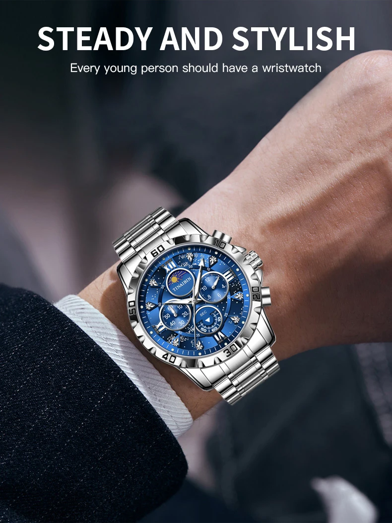 - Boîtier et bande en acier inoxydable: Durable et résistant, la montre est fabriquée en acier inoxydable de haute qualité qui ne sera pas facilement rayé ou endommagé