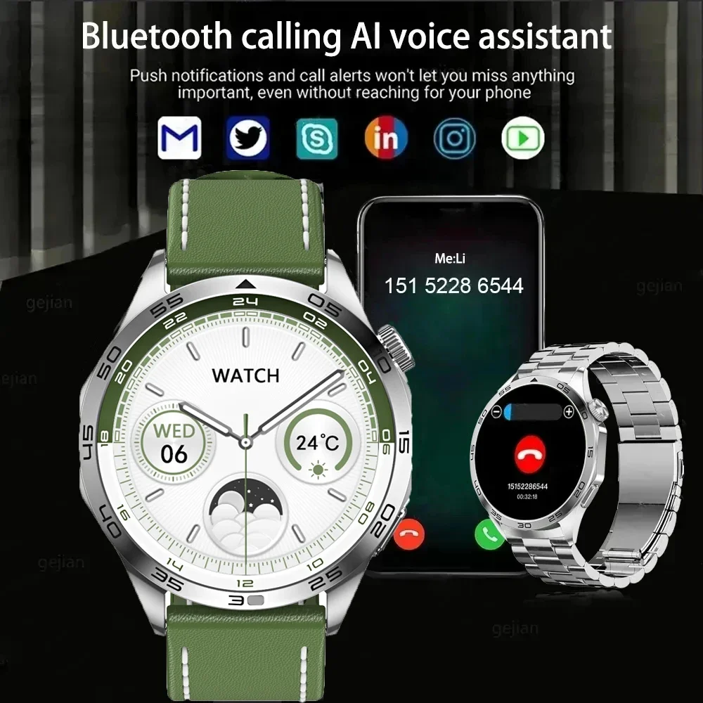 Montre intelligente pour hommes avec contrôle d’accès NFC, écran AMOLED 1.43*466 HD indiquant l’heure à tout moment pour la surveillance de la fréquence cardiaque, les appels Bluetooth et plus encore.
