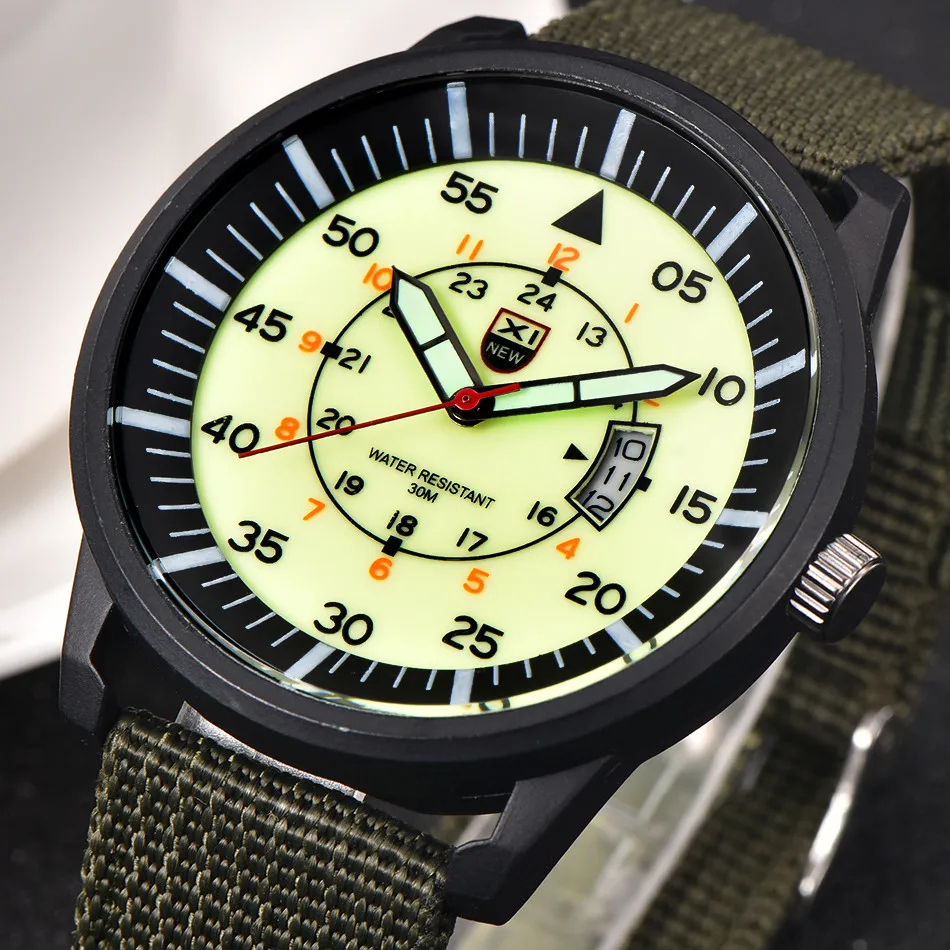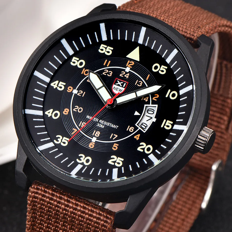 Montre minimaliste en toile pour homme, montre militaire à quartz, cadran noir, date, montre de sport de luxe, haut