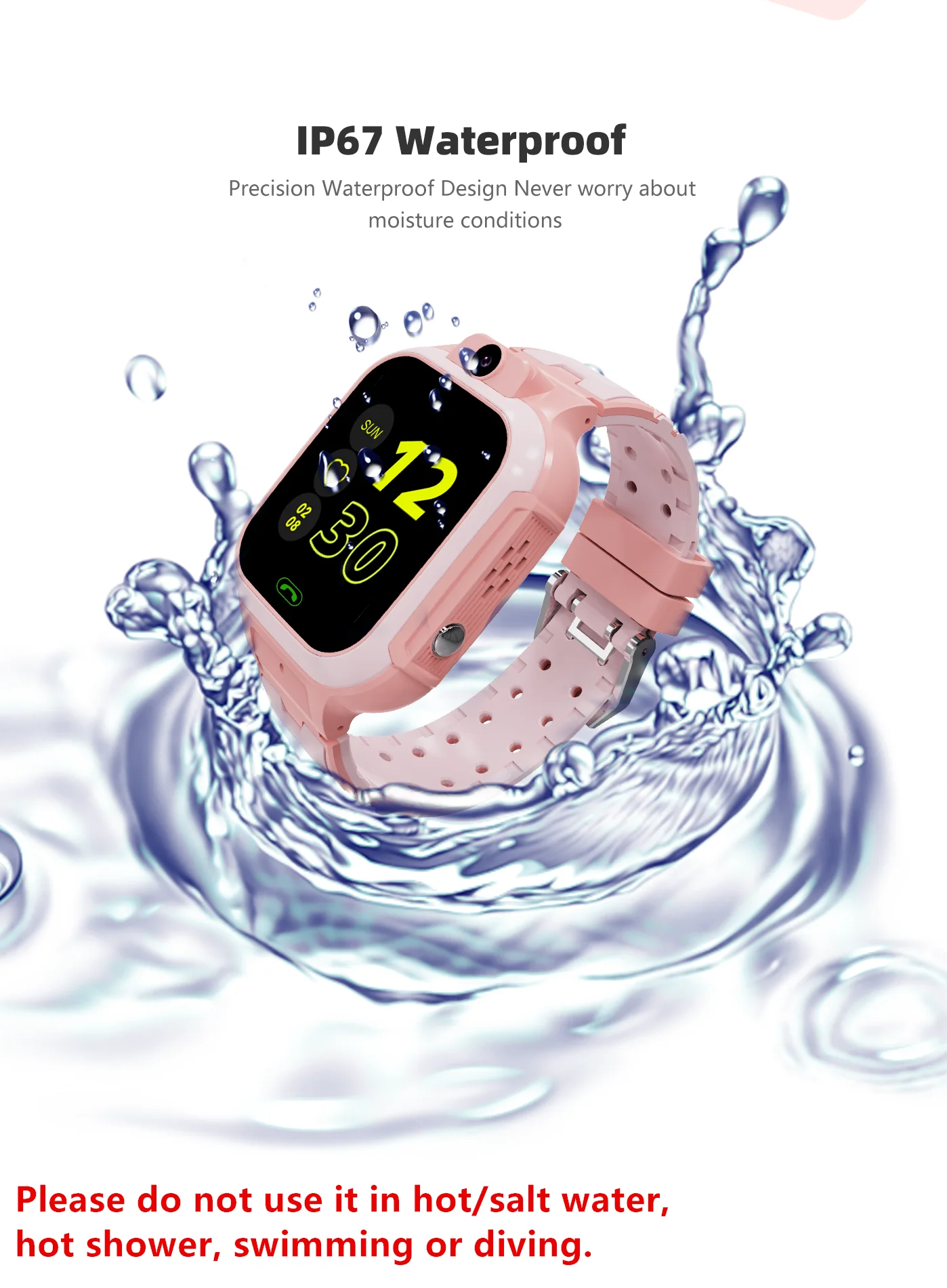| – Écran résistant aux chutes et aux rayures | – Ne fonctionne pas sous l’eau chaude/salée |