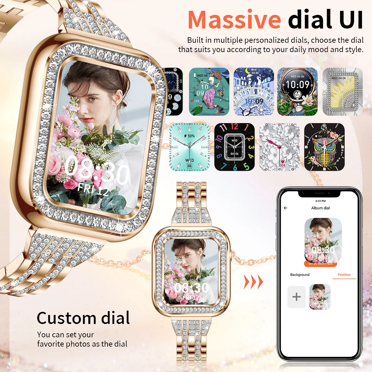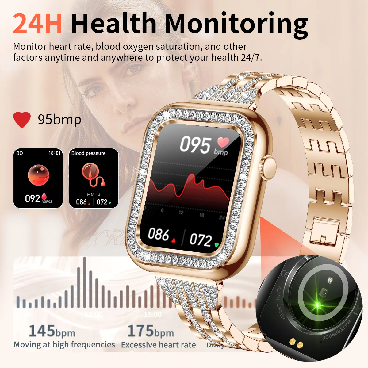 La montre intelligente LIGE est étanche et convient aux femmes. Elle possède de nombreuses fonctionnalités, notamment un appel Bluetooth, une mesure de la tension artérielle et du taux d’oxygène dans le sang, ainsi qu’un moniteur de santé. Elle est compatible avec les appareils Android et iOS.