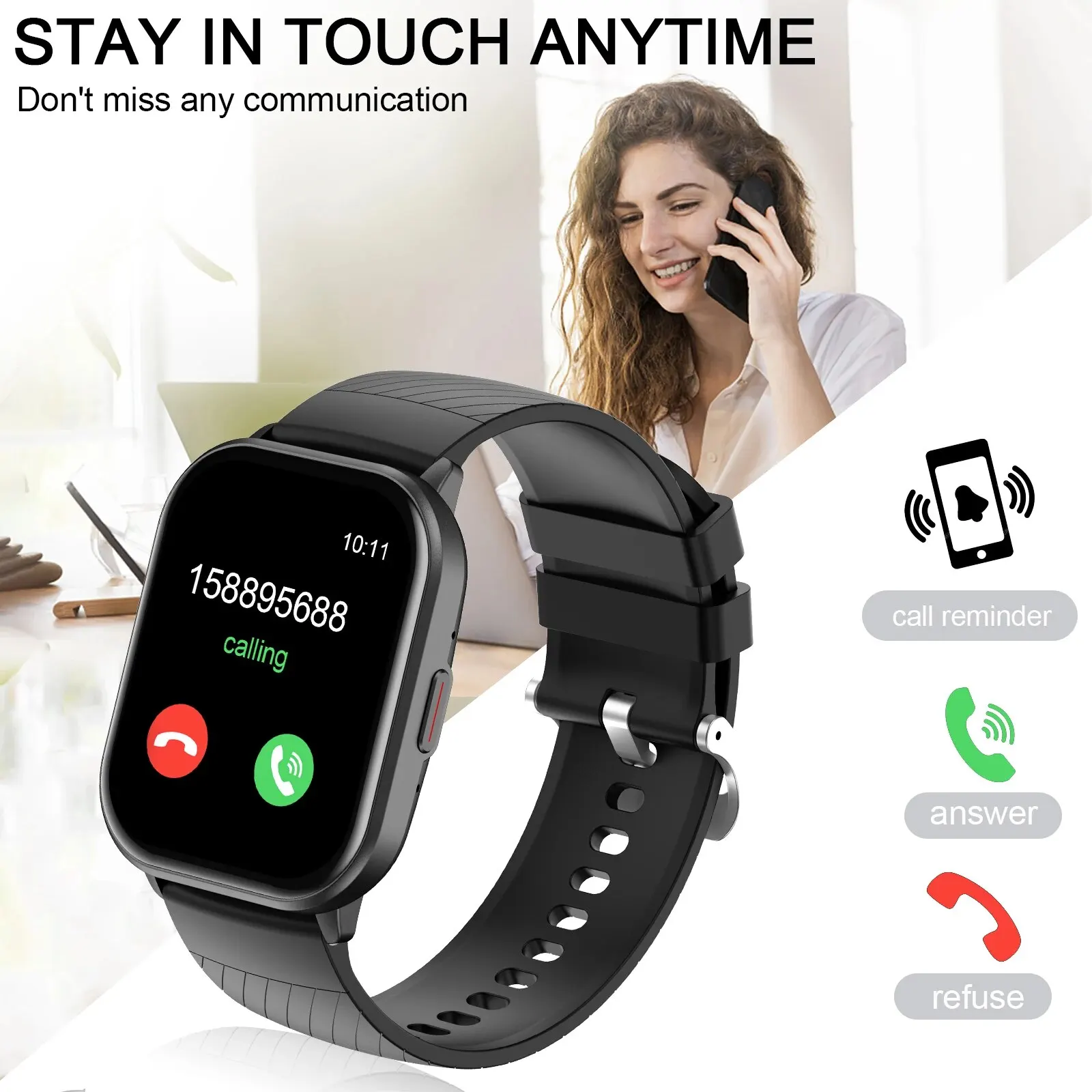 5. Push de message, appel sans fil, enregistrement des calories, rappel d’appel/SMS, etc.