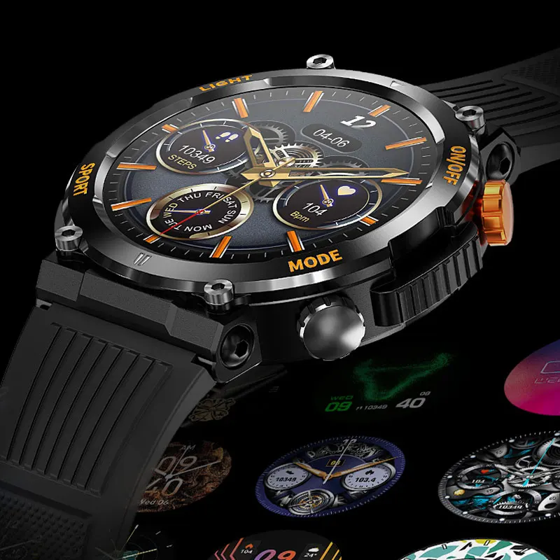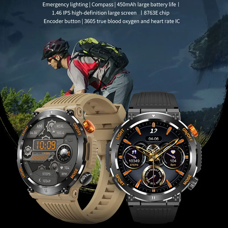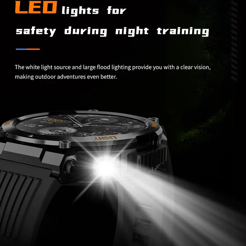 La montre intelligente avec boussole pour homme offre de nombreuses fonctionnalités intéressantes pour les amateurs de sports de plein air. La boussole intégrée facilite l’orientation lors de vos aventures en extérieur, tandis que l’éclairage LED vous permet de voir clairement même dans l’obscurité. Le suivi de la santé est également un plus, vous permettant de surveiller votre condition physique en temps réel.