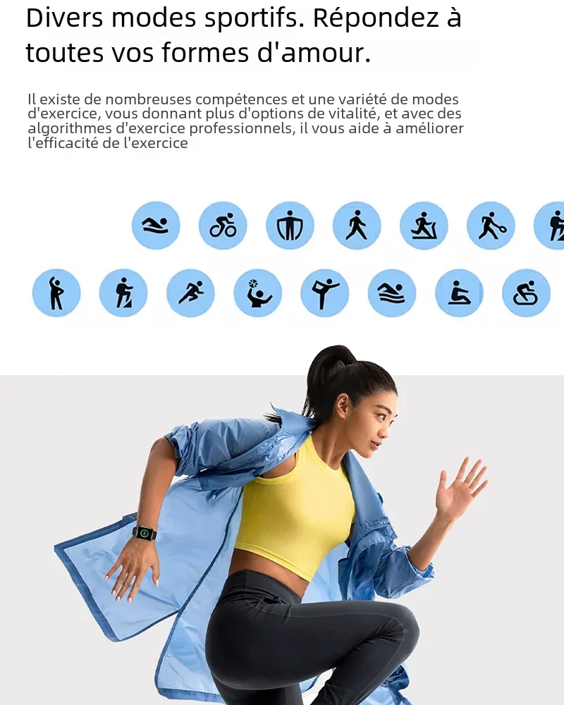 - Moniteur de santé: fréquence cardiaque/pression artérielle/surveillance de l’oxygène/glycémie/santé des femmes/température/surveillance du sommeil